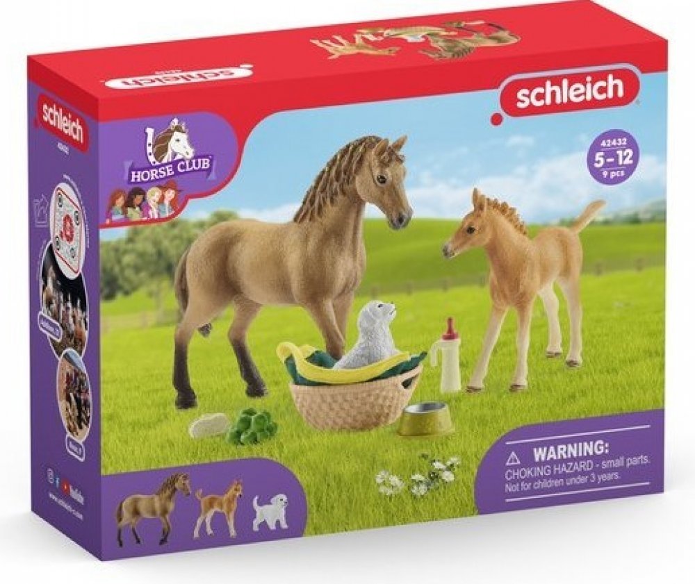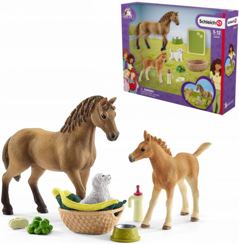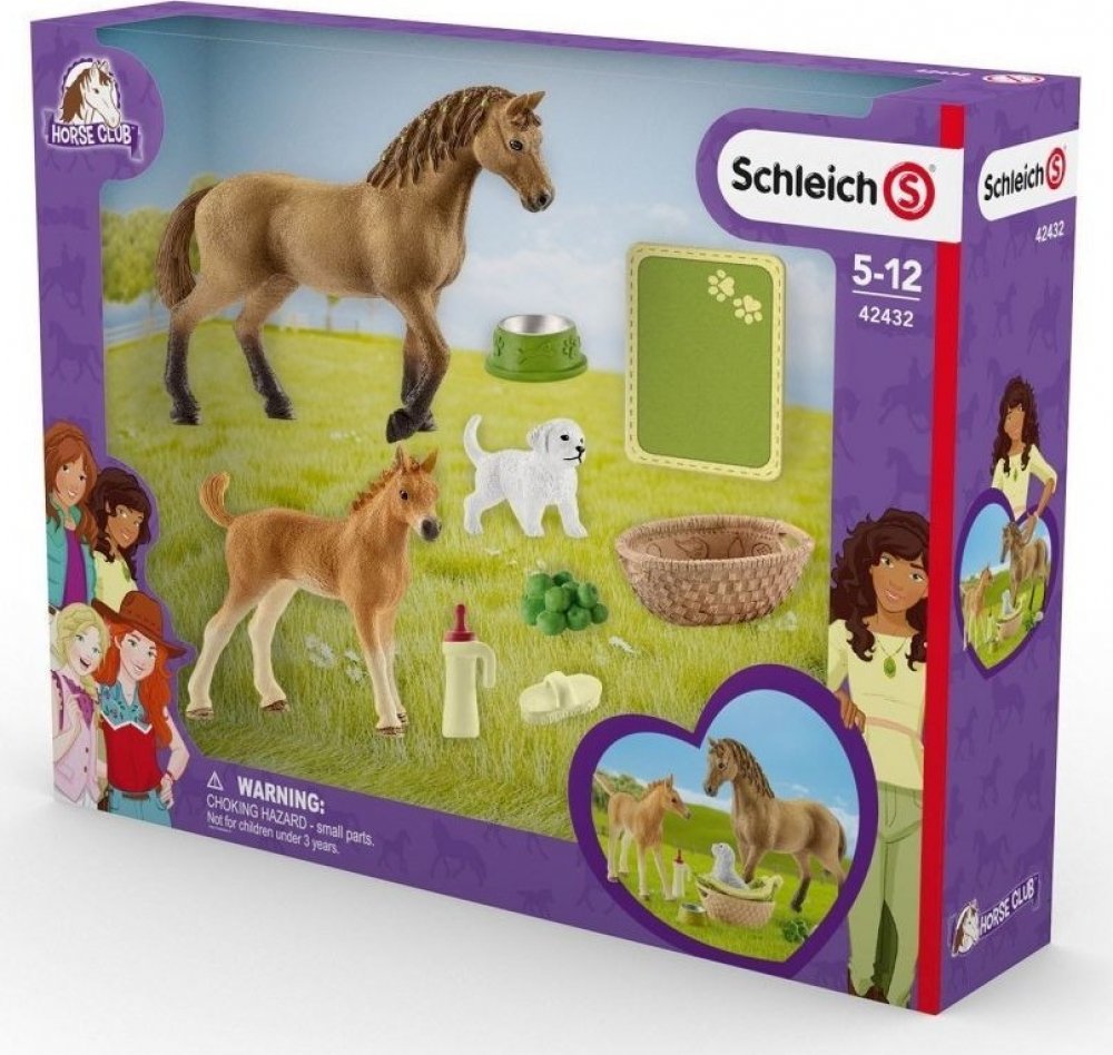 Schleich 42432 Set hříbě a Quarter kůň se štěňátkem a doplňky