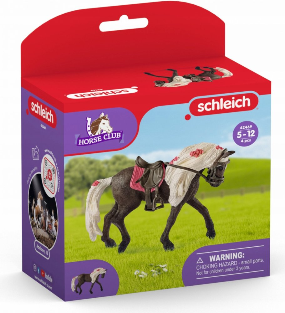 Figurky a zvířátka Schleich 42469 - Sada koně s postrojem. Schleich Klisna Rocky Mountain - koňská show. Na koňské show v Lakeside na sebe klisna plemene Rocky Mountain přitahuje pohledy všech okolo díky svým ladným pohybům.