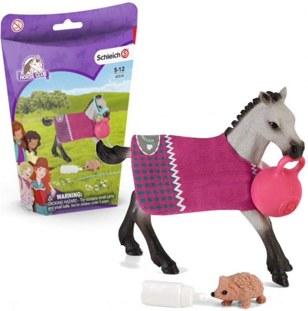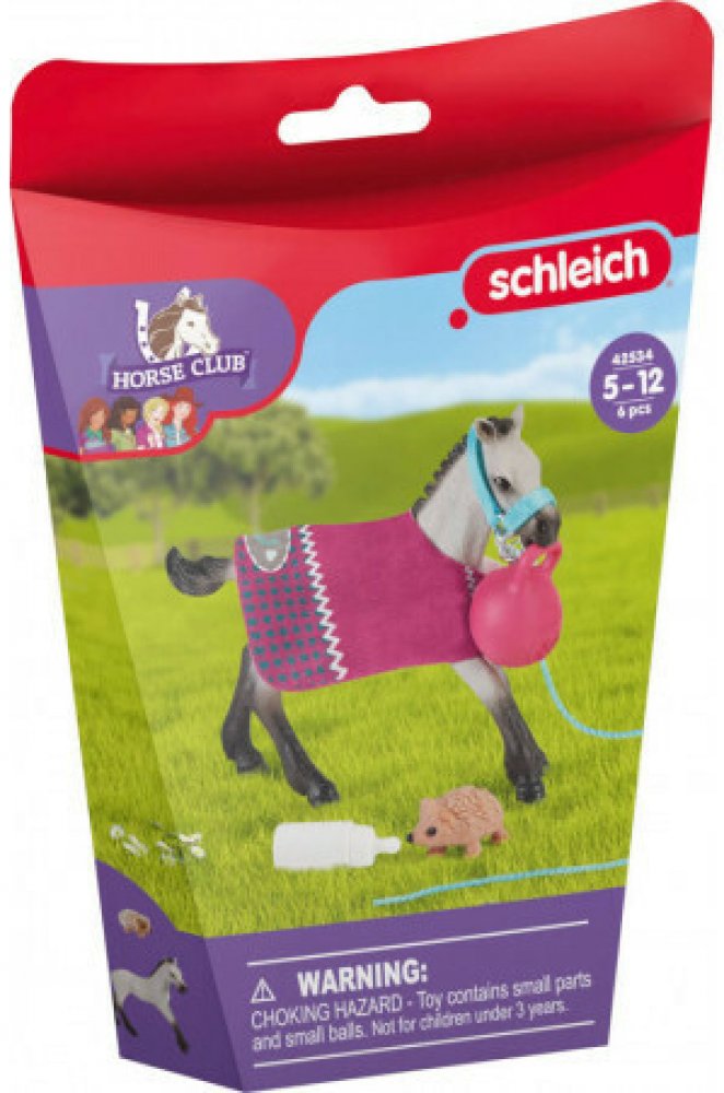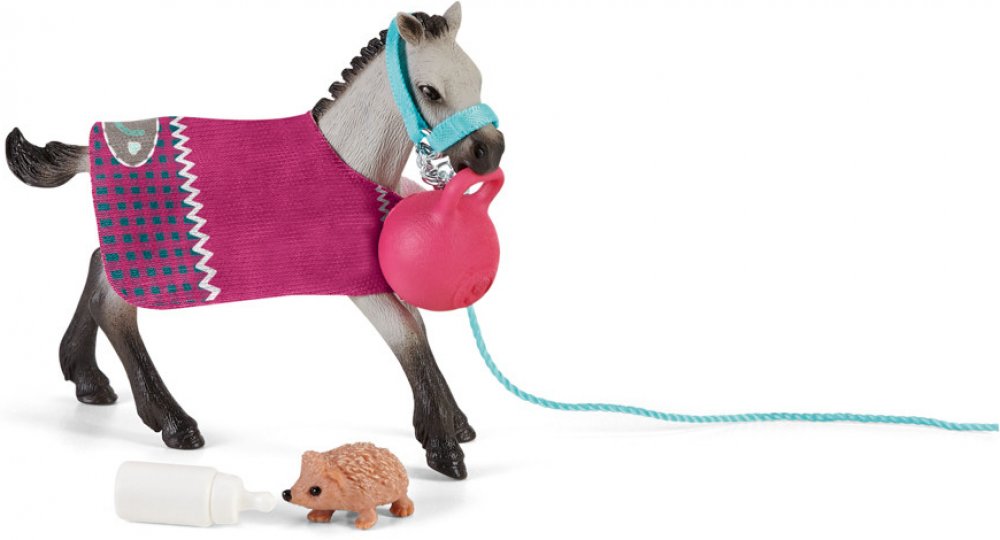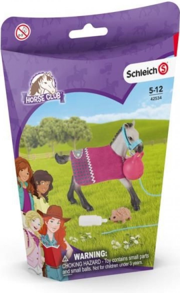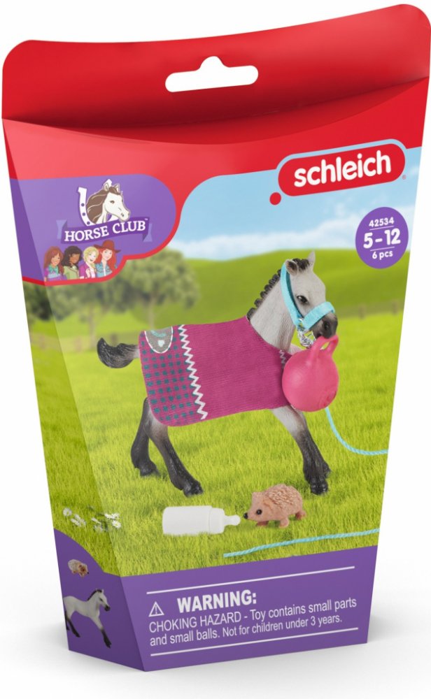 Součástí zábavné sady pro zvířata od Schleich® Horse Club je hrací míč, který byl speciálně vyvinut pro koně. Má rukojeť, za kterou jej může hříbě chytit zuby. Během hry si hříbě splete malého roztomilého ježka s míčem. Naštěstí si rychle svou chybu uvědomí a nikdo není zraněn. Při tomto vtipném setkání se z nich stanou přátelé. Po projížďce se hříbě napije z lahve s mlékem. Na zádech má položenou...