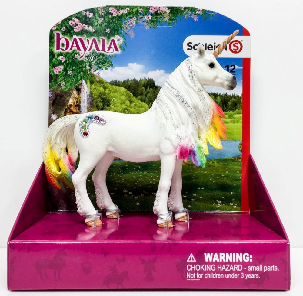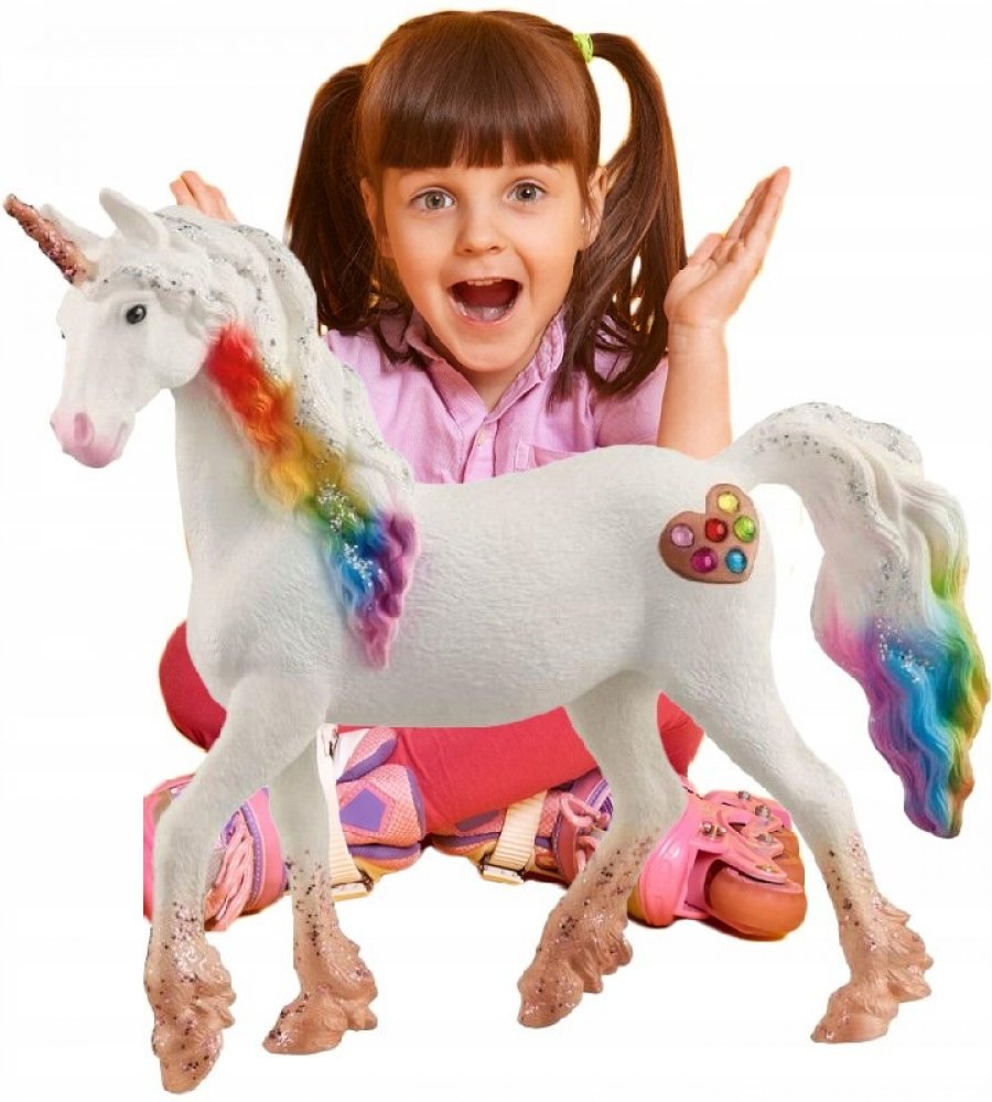 Detailně zpracovaná, ručně malovaná figurka duhového jednorožce kobyly od Schleich. Realistický vzhled. Baleno v openboxu.