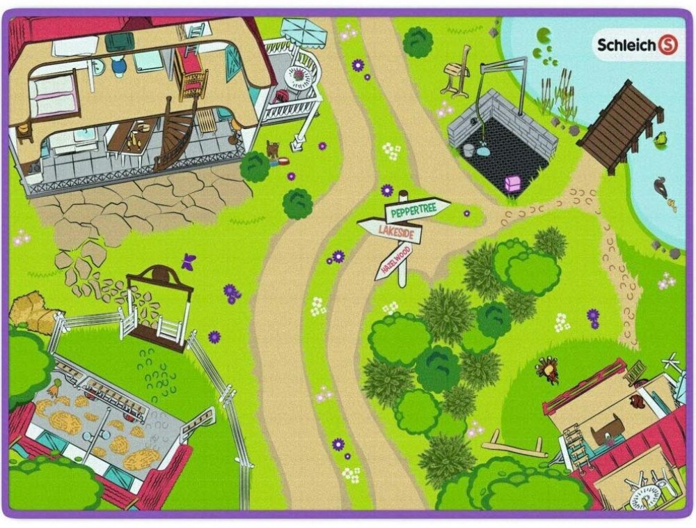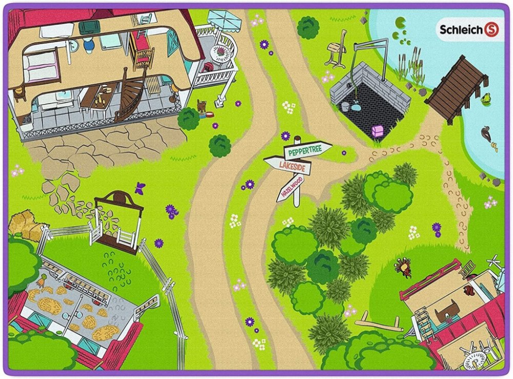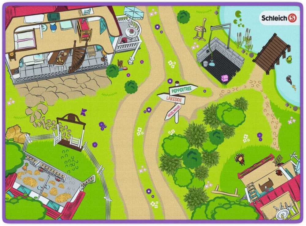 Hrací podložka Horse Club S hrací podložkou je prozkoumávání a poznávání světa Horse Clubu ještě zábavnější. Z velkého koňského dvora jezdí pojízdná veterinářka se svým pick-upem k naléhavým případům, koně se upravují a čistí v mycím prostoru a v přívěsu pořádají děvčata tajné klubové schůzky. Rozměry: 133 x 92 x 0,5 cm (š x h x v) Schleich - Hrací podložka Horse Club (Nově vytvořená položka - pop...