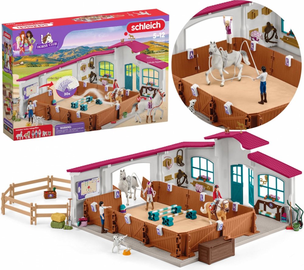 Konečně! Hannah, Sofie a Tom mohou trénovat nové triky! Hannah dostane svou krásnou bílou oldenburskou klisnu, osedlá ji a nasadí uzdu.