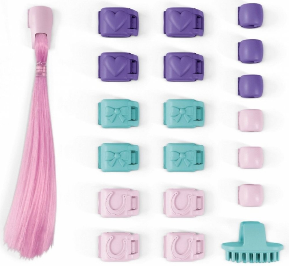 Tyhle doplňky jsou z vysoce kvalitního termoplastového kaučuku, takže něco vydrží (i když to vezme do ruky malý „stylista“). Holčičky a kluci s nimi snadno rozjedou vlastní příběhy a proklouznou do mýtického světa, kde se hřívy třpytí a dobrodružství je na denním pořádku.