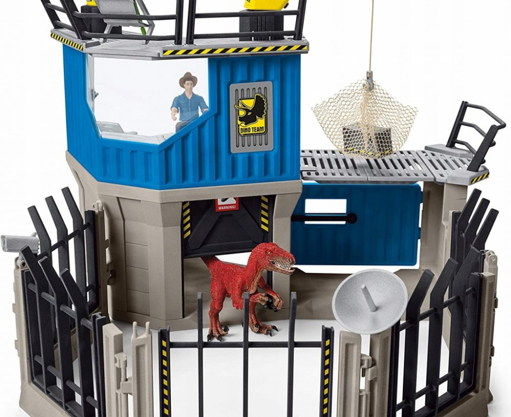 TÝM DINO, skládající se ze tří bratří Colby MAXX, LUIS a FLYNN, je na cestě k odhalení tajemství! Velká výzkumná dinosauří stanice od Schleich nabízí spoustu dobrodružství a zábavy při hře. Hluboko v amazonské džungli nabízí skrytá stanice vše, co je potřeba k výzkumu posledních žijících dinosaurů. Vůdce MAXX má na Velké výzkumné stanici Schleich Dinosaurs hodně co dělat. Kromě velitelského střediska má stanice také vyhlídkovou plošinu s výkyvnou sedlovou střechou a jeřábem. Pod nimi je karanténa pro nově zajaté dinosaury. První vyšetření je možné provést hned tady a poté mohou být dinosauři propuštěni do uzavřeného prostoru přes poklop. Ach ne. Velociraptor unikl. Dokáže to MAXX chytit znovu? Dinosauři a výzkumník Maxx jsou k dispozici pouze v této sadě.