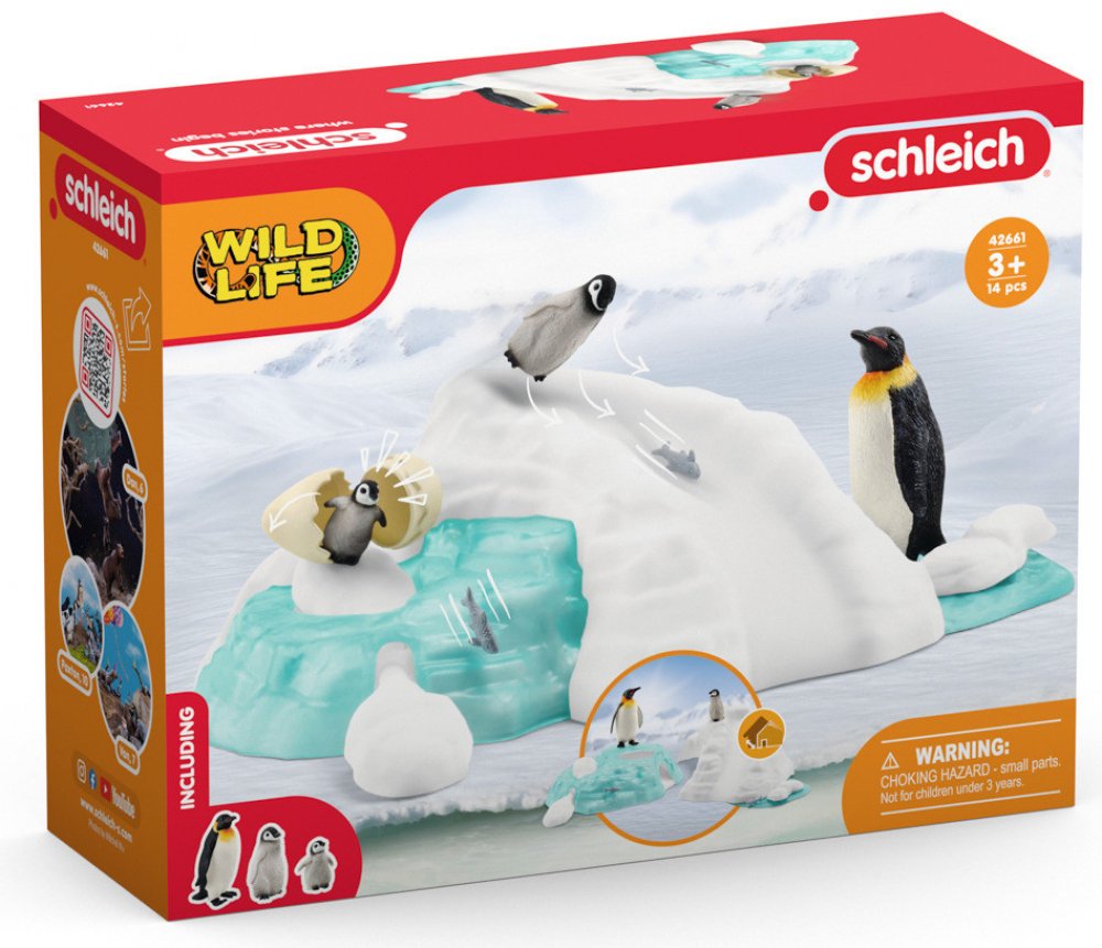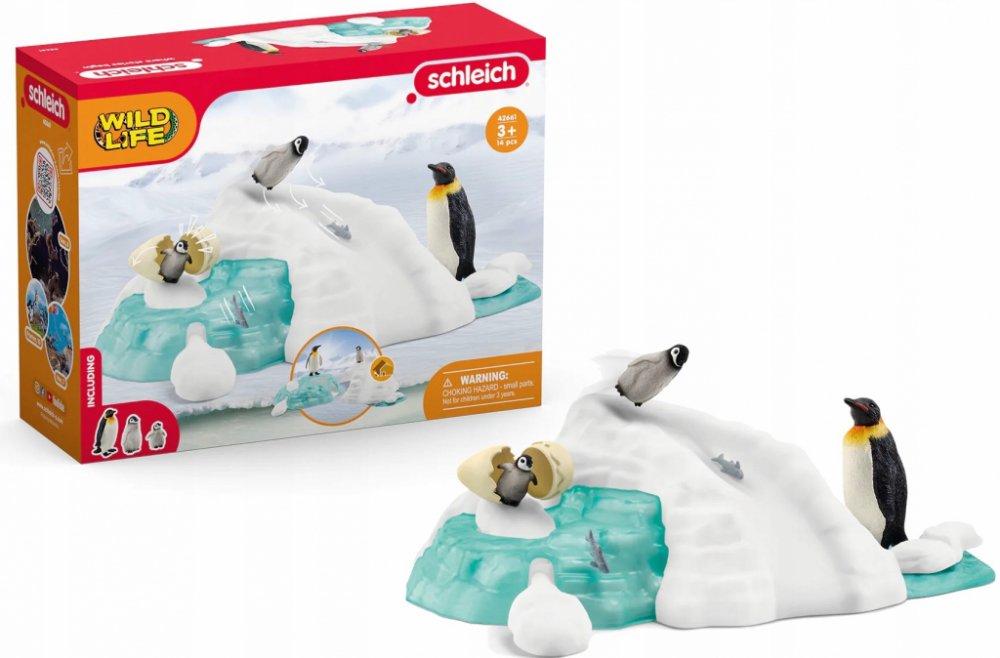 Obsah1x tučniak císařský, 1x kuřátko tučniaka císařského, 1x mládě tučniaka císařského, 1x vejce, 2x ryba, 1x ledová kryha tučniaka se skluzavkou, houpačkou, jeskyněmi a kolotočem