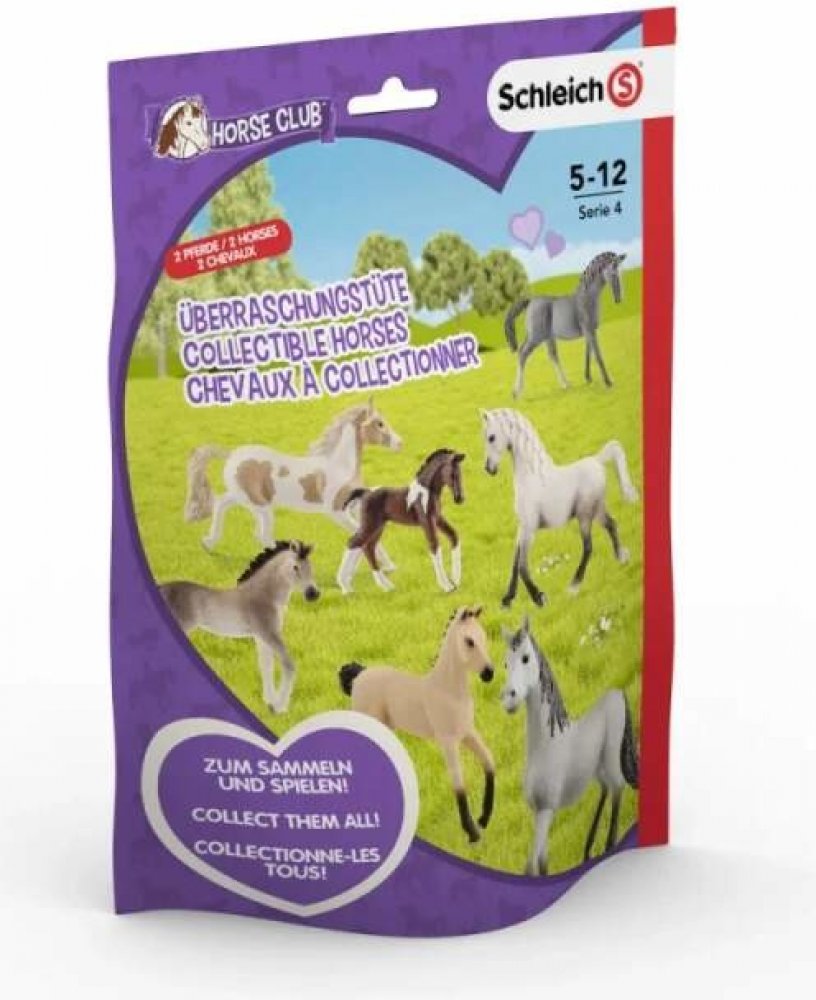 Sběratelská zvířátka Horse Club. Objevujte a sbírejte 2 ze 14 různých koní Schleich® Horse Club! Figurky Schleich® jsou propracované do nejjemnějších detailů, aby dětem pomohly učit se během hraní. Tato položka je součástí tematického světa HORSE CLUB a je vhodná pro děti ve věku 5-12 let. Nechte se překvapit, kteří dva koníci Schleich® Horse Club se skrývají ve vašem sáčku! Sbírejte všech 14 koní! Sáček s překvapením obsahuje 2 zvířátka. Rozměr sáčku: 18 x 22 x 5 cm.