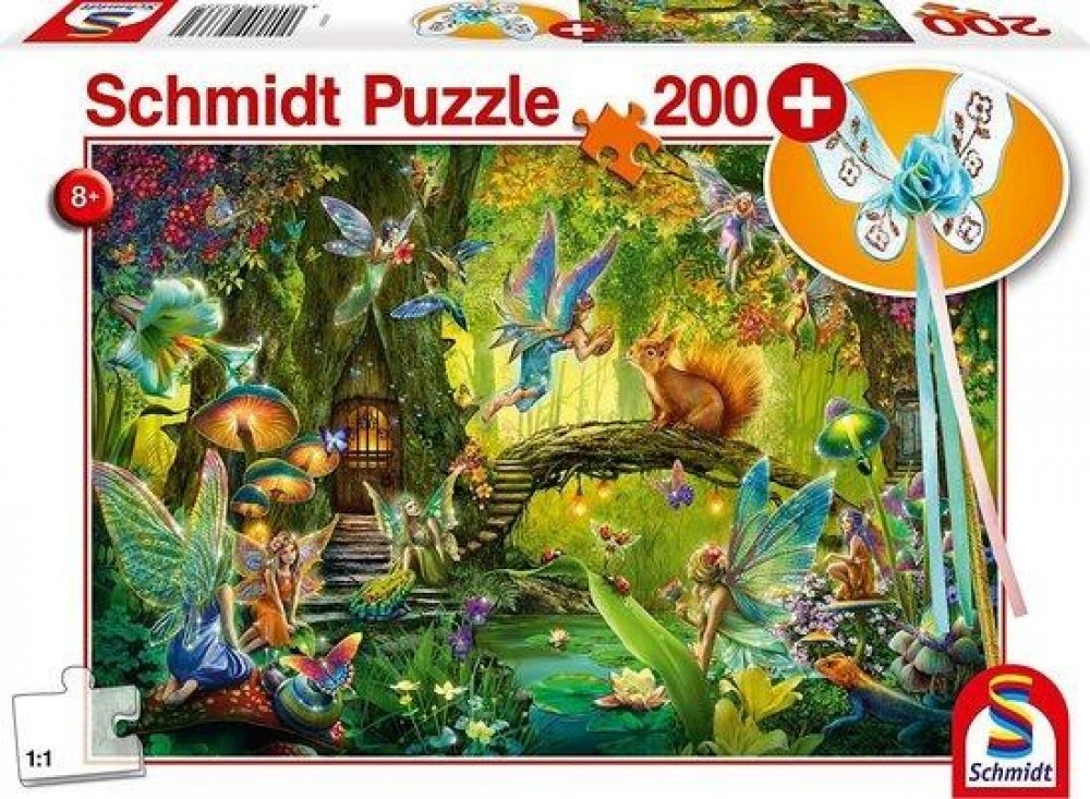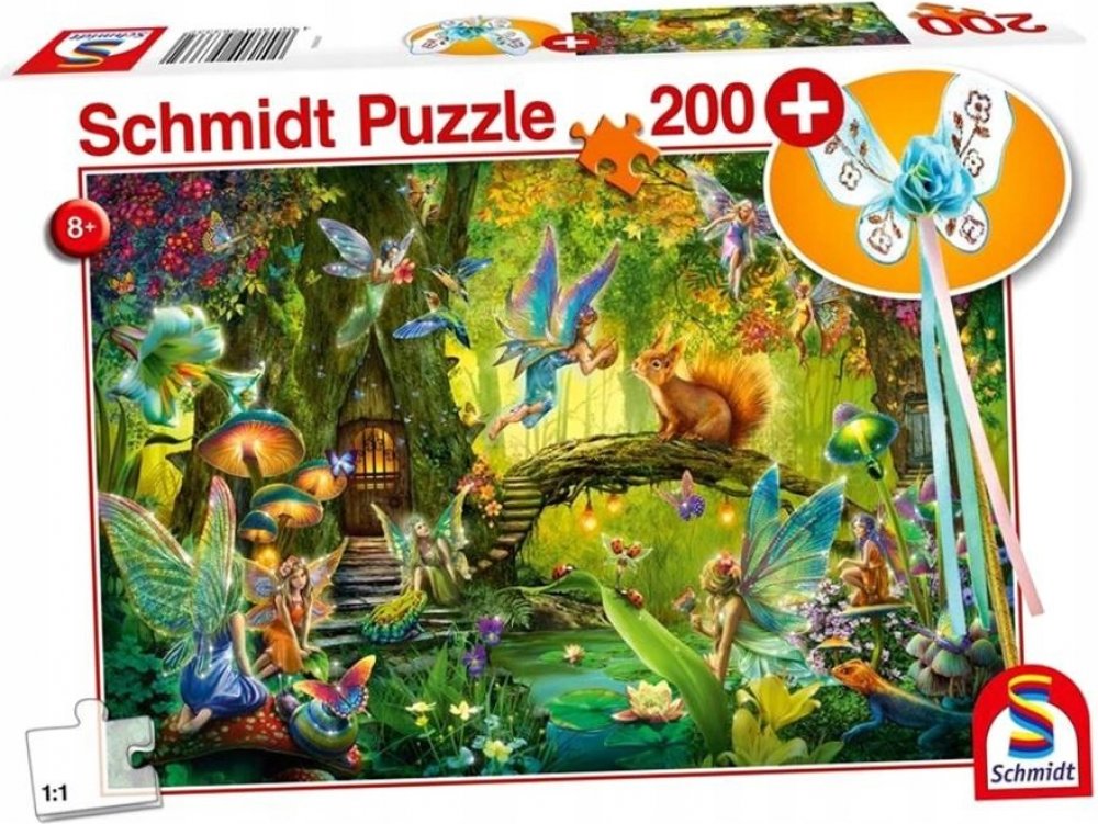 Puzzle s oblíbeným motivem lesních víl a dárek ve formě kouzelné hůlky. Vhodné pro děti od 8 let. Dětské puzzle skládající se z 200 dílků - od 8 let - 200 dílků - Víly v lese - Včetně vílí hůlky Rozměry motivu: Délka: 43,2 cm Šířka: 29,1 cm Nevhodné pro děti do 3 let. Může dojít ke spolknutí malých částí. Nebezpečí udušení! Číslo výrobku výrobce: 56333 Schmidt Spiele GmbH, Lahnstraße 21, 12055 Ber...