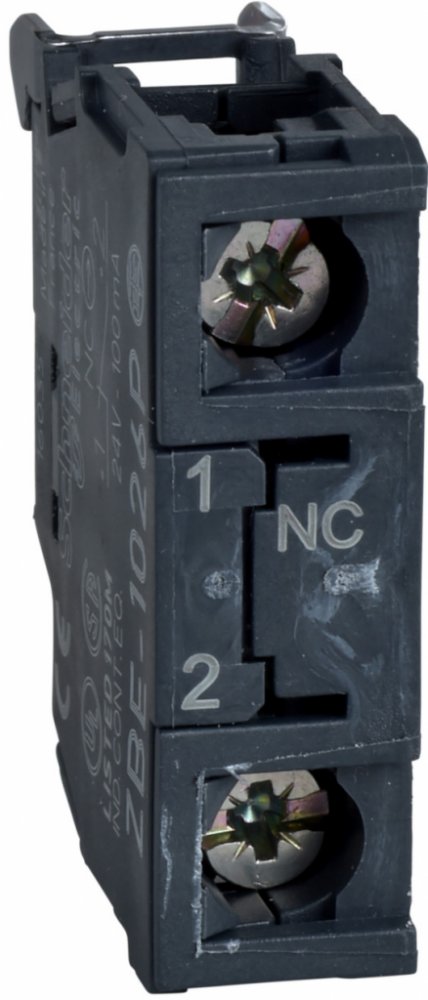 Jednoduchý kontaktní blok pro hlavu Ø22 1V pozlacená šroubová svorka. řada výrobků: Harmony XB4, Harmony XB5 - typ produktu nebo součásti: kontaktní blok - označení přístroje: ZBE - složení a typ kontaktů: 1 V - funkce kontaktu: závisle spínající - typ kontaktního bloku: jednoduchý - použití kontaktů: kontakty pro spínání nízkých proudů - připojení - svorky: šroubové svorky = 1 x 0,22 mm² bez kabe...
