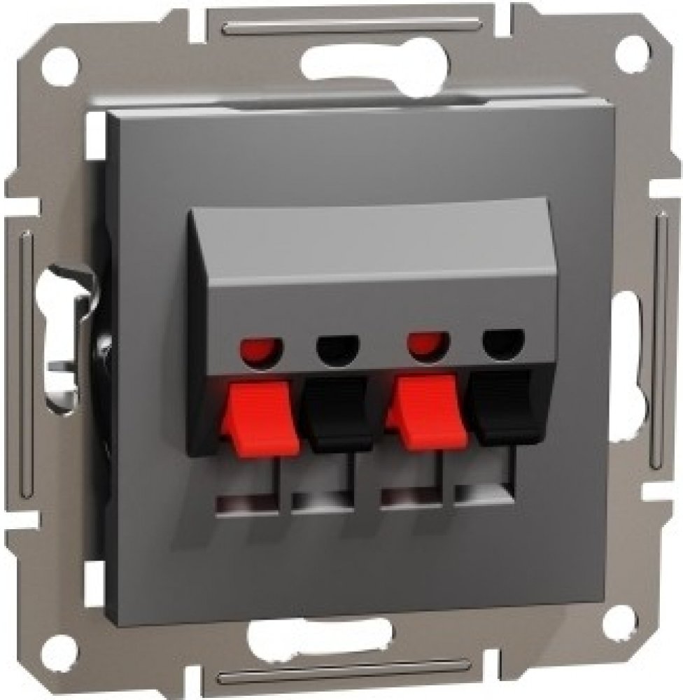 Přístroj reproduktorové zásuvky bez krycího rámečku Schneider Electric Asfora EPH5700171. Antracitová barva. Pružinové svorky. Stupeň krytí IP20. Antracitové přístroje Asfora jsou dodávány bez rámečku, na rozdíl od jiných barevných provedení Asfora. Zásuvky můžete osazovat do vícenásobných rámečků. Sestava neobsahuje instalační krabici.