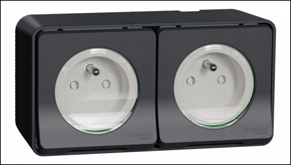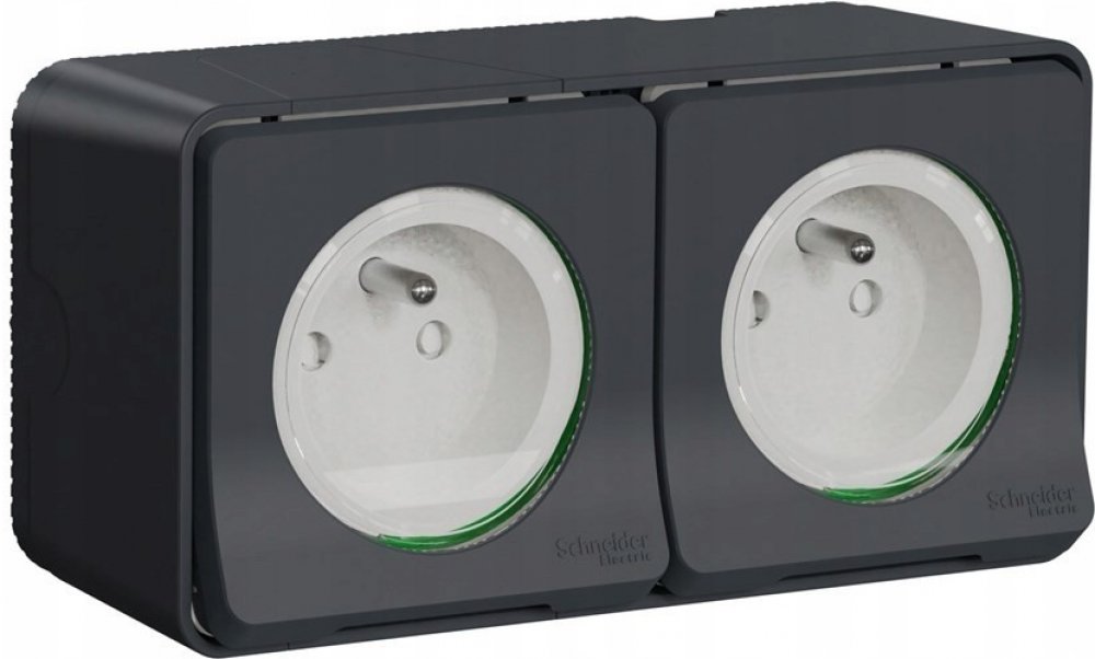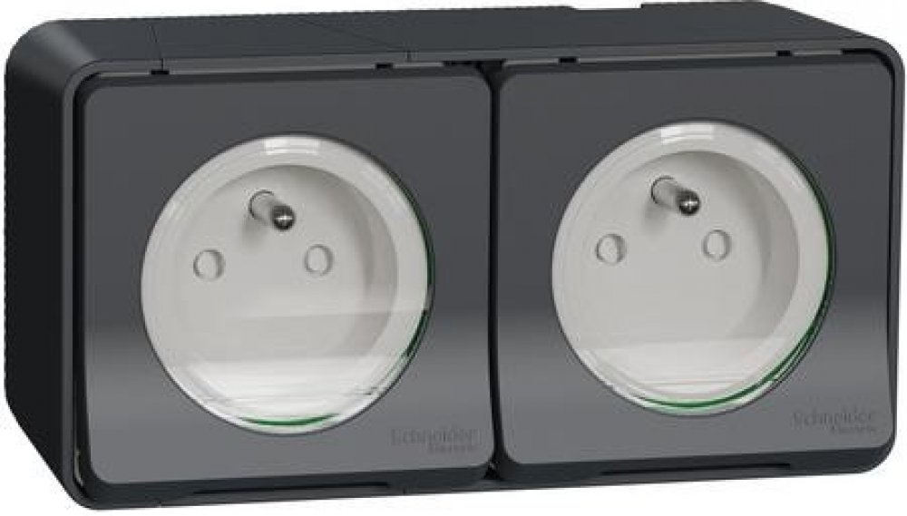 Zásuvka jednonásobná 2P+E dvojitá, v šedé barvě. 16 A