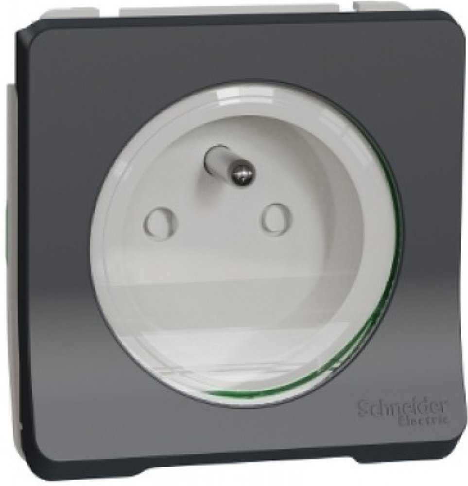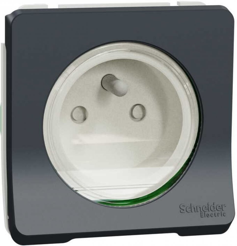 SCHNEIDER MUR36133 MUREVA Zásuvka 16A 2P+E, clonky, bezšroubová, IP55 v antracitové barvě, s clonkami, bezšroubové zapojení, s krytím IP55 pro venkovní instalaci a montáží na zeď.
