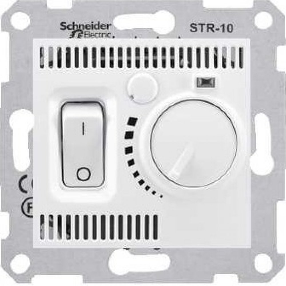 Sedna, termostat prostorový otočný s vypínačem, 10A bez rámečku, barva bílá.