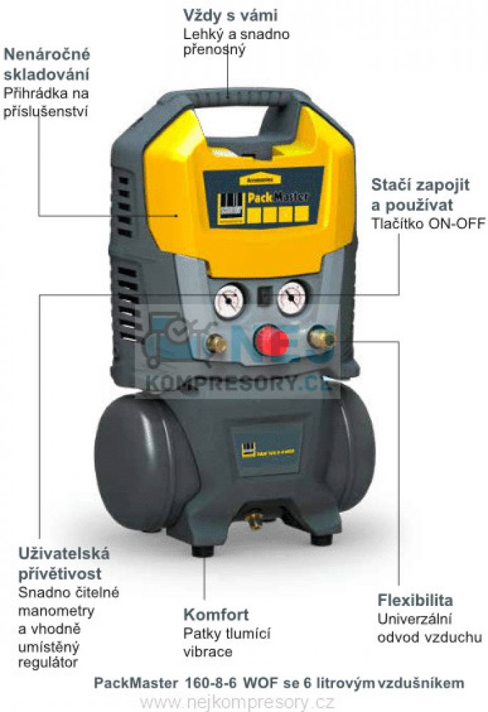 Kompresor bezolejový PackMaster 160-8-6 WOF, 6 l