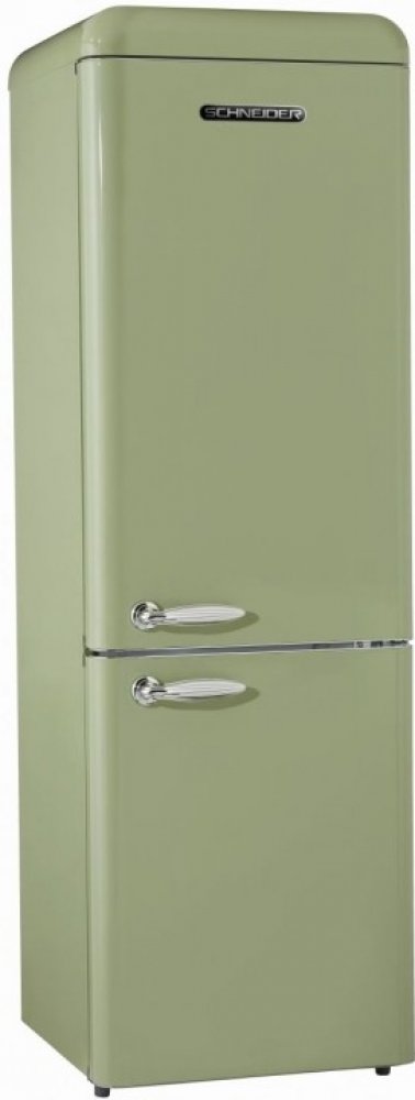 Promyšlená technologie Schneider s dynamickým chlazením umožňuje, aby chladnička měla stejnou teplotou a vlhkost v celé oblasti : jídlo si můžete uložit kamkoli chcete. Nemluvě o rychlejším návratu do chladu po každém otevření dveří. Pohodlné použití, s LED stropním a bočním osvětlením vidíte na první pohled vše, co je uloženo v ledničce. Chladnička využívá energii ekonomicky. Chladnička s mrazničkou Schneider je klasifikovaná v energetické třídě A ++, pracuje pro Vás a snižuje účty za energii. A konečně, inspirované 50. lety, krásné křivky a zelený odstín dodávají vašemu interiéru dekorativní nádech.