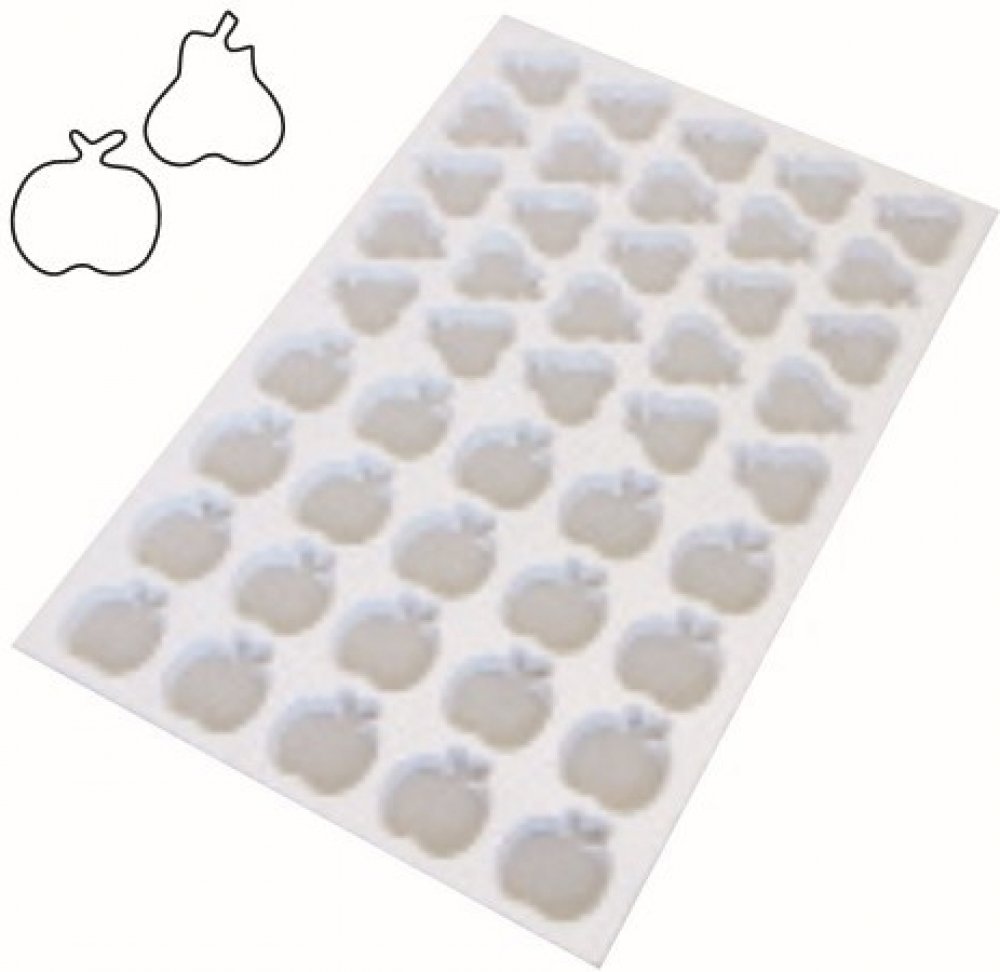 Vykrajovač obsahuje dva motivy: jablko / hruška, velikost 63/65 mm, 25/20 kusů.