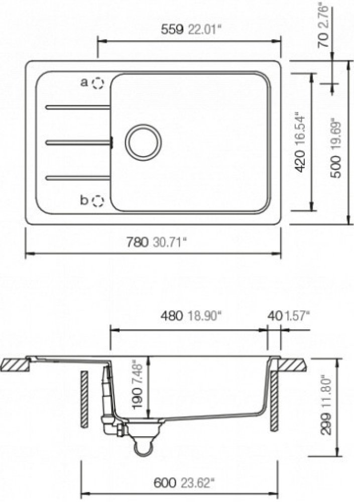 Rozměr dřezu: 780 × 500 mm