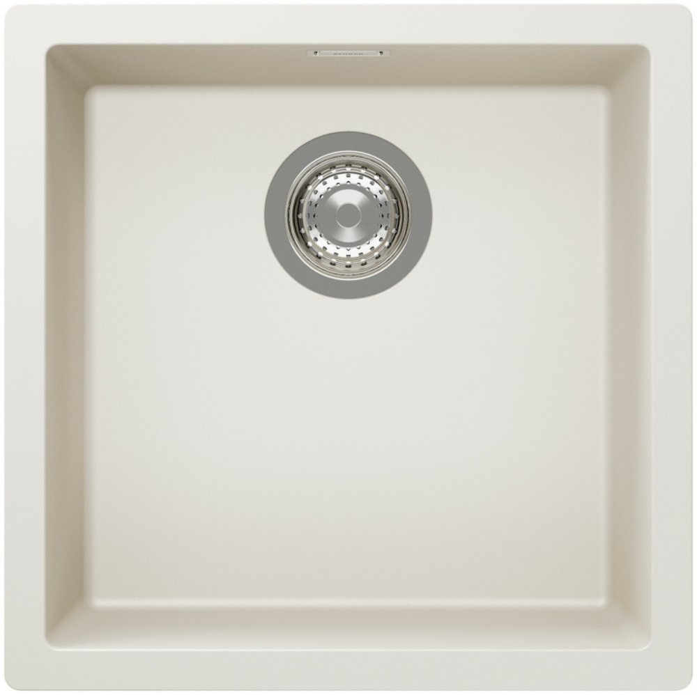 Hranatý granitový jednodřez, provedení Magnolia, rozměr 456 x 456 mm, vana 400 x 400 x 200 mm, horní montáž, minimálně 50 cm skříňka, s excentrem.Součástí dřezu je kompletní příslušenství k montáži. (výpusť, sifon, příchytky atd.) Není třeba nic dokupovat.