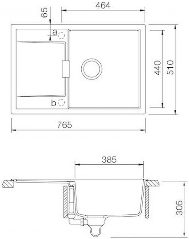 Vnější rozměry dřezu: 765 x 510 mm