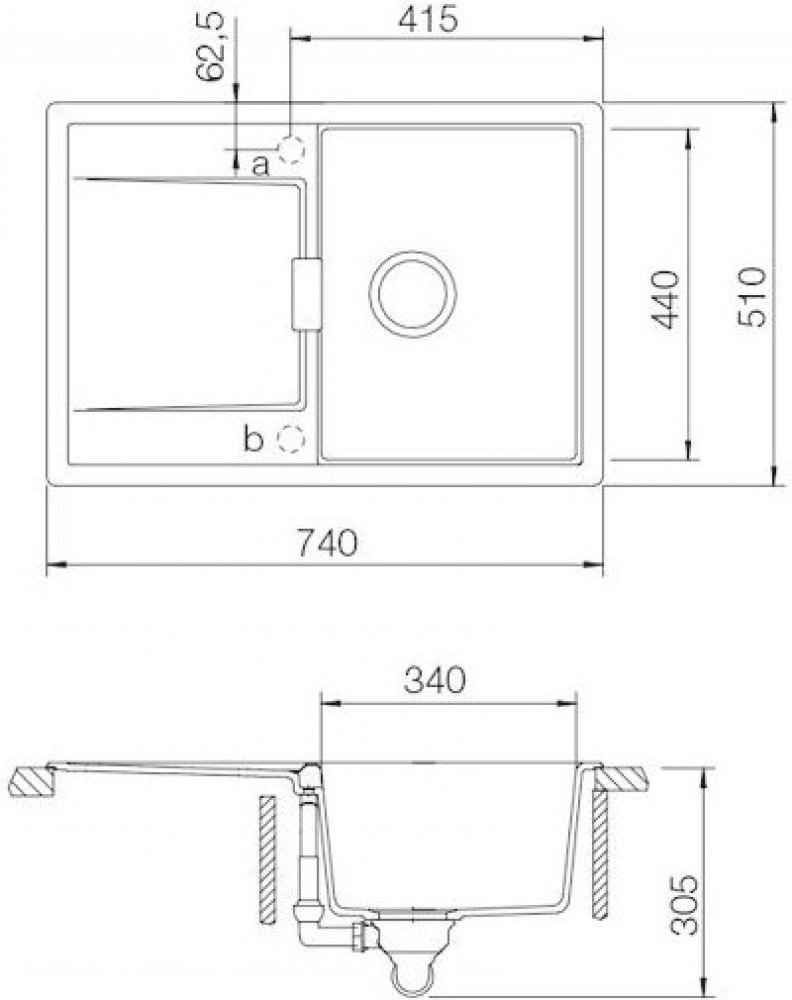 Vnější rozměry dřezu: 740 x 510 mm