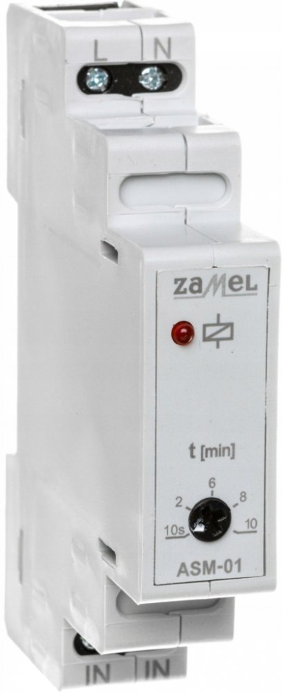 na dobu nastavenou uživatelem, poté dojde k automatickému vypnutí. Pracovní dobu lze plynule regulovat v rozsahu od 10 s do 10 minut pomocí potenciometru umístěného na čelním panelu automatu. Schodišťový automat ASM-01/U lze použít také jako časové relé realizující funkci opožděného vypnutí.
