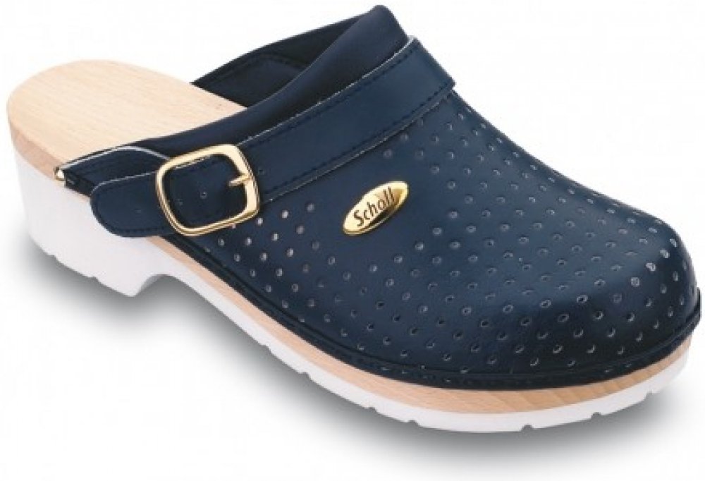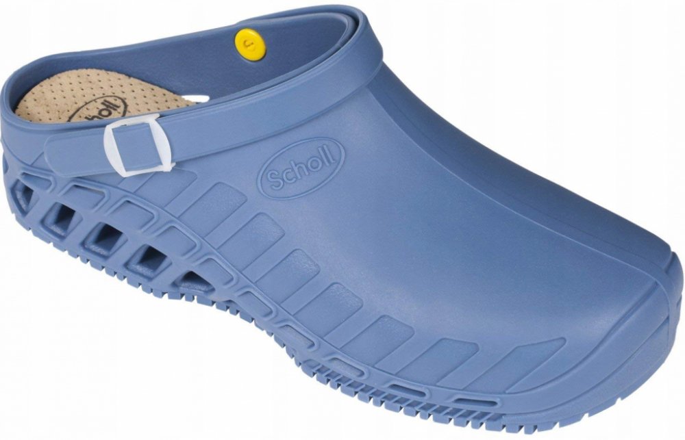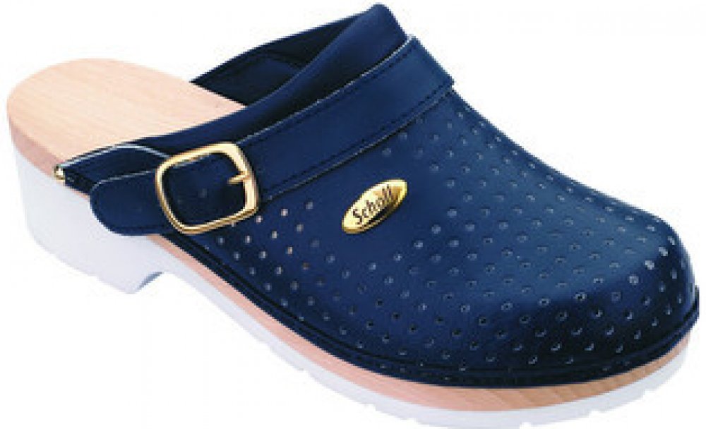 Scholl CLOG SUPERCOMFORT – tmavě modré pánské pracovní pantofle Scholl CLOG SUPERCOMFORT představují ideální volbu pro muže, kteří hledají spolehlivou pracovní obuv s vysokým komfortem. Tyto tmavě modré pantofle kombinují tradiční kvalitu značky Scholl s moderními technologiemi, které zajišťují pohodlí během celodenního nošení. Dřevěná anatomická stélka z bukového dřeva podporuje správné držení těla a snižuje únavu nohou. Perforovaný kožený svršek zajišťuje optimální cirkulaci vzduchu a udržuje nohy suché po celý den. Protiskluzová podrážka splňuje přísné bezpečnostní normy a poskytuje stabilní krok na různých površích. Tlumení nárazů v oblasti paty přispívá k ochraně pohybového aparátu a zvyšuje komfort při chůzi. Tato obuv Scholl je ideální pro zdravotnický personál a další profesionály, kteří potřebují odolnou pracovní obuv pro každodenní použití. Objednávejte pod kat. číslem F200781040