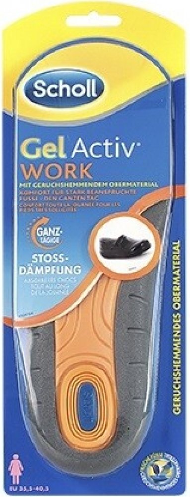Gelové vložky do bot Scholl GelActive Work do práce. Vhodné především pro tvrdé povrchy. Technologie GelActive tlumí nárazy vznikající při chůzi a snižuje nadměrný tlak na chodidla. Stálá tlumící vrstva zajišťuje celodenní pohodlí.