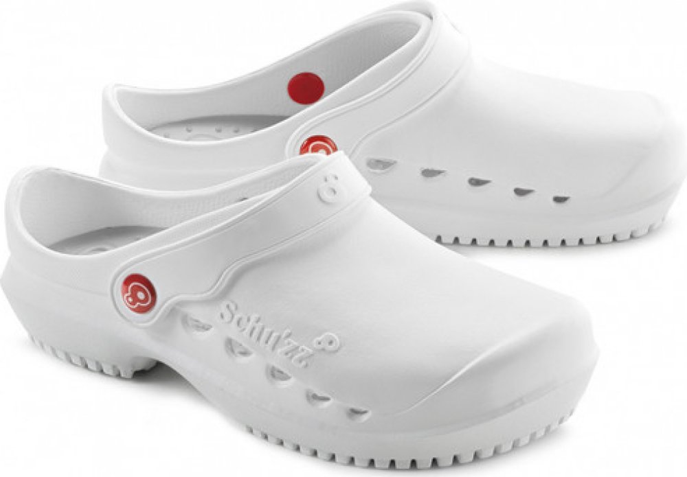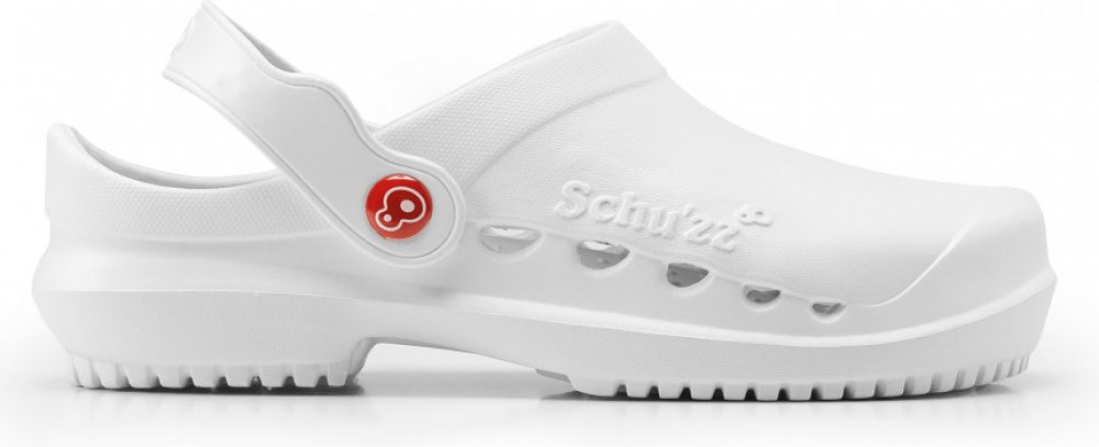 Pohodlná, ochranná a lehká obuv pro práci v nemocnicích a dalších zdravotnických zařízení. Antibakteriální EVA materiál je lehký a pratelný do 40° C, netoxický, plně recyklovatelný a odolný vůči chlóru a dalším chemikáliím. Vyjímatelná, omyvatelná stélka s možností její desinfekce.