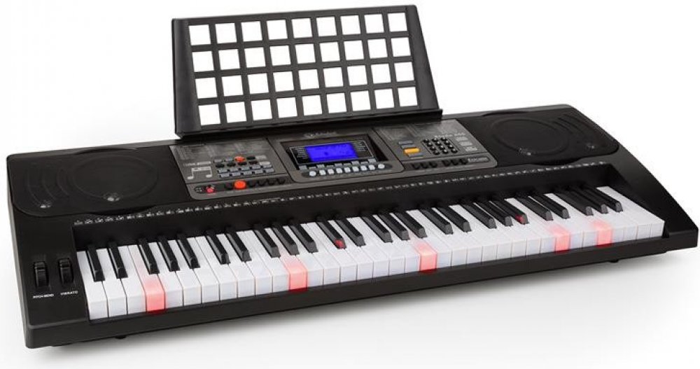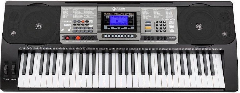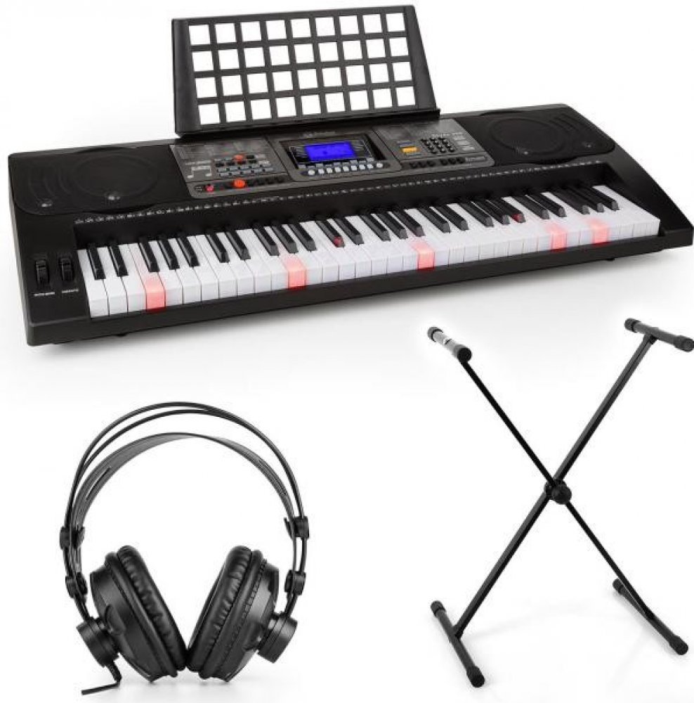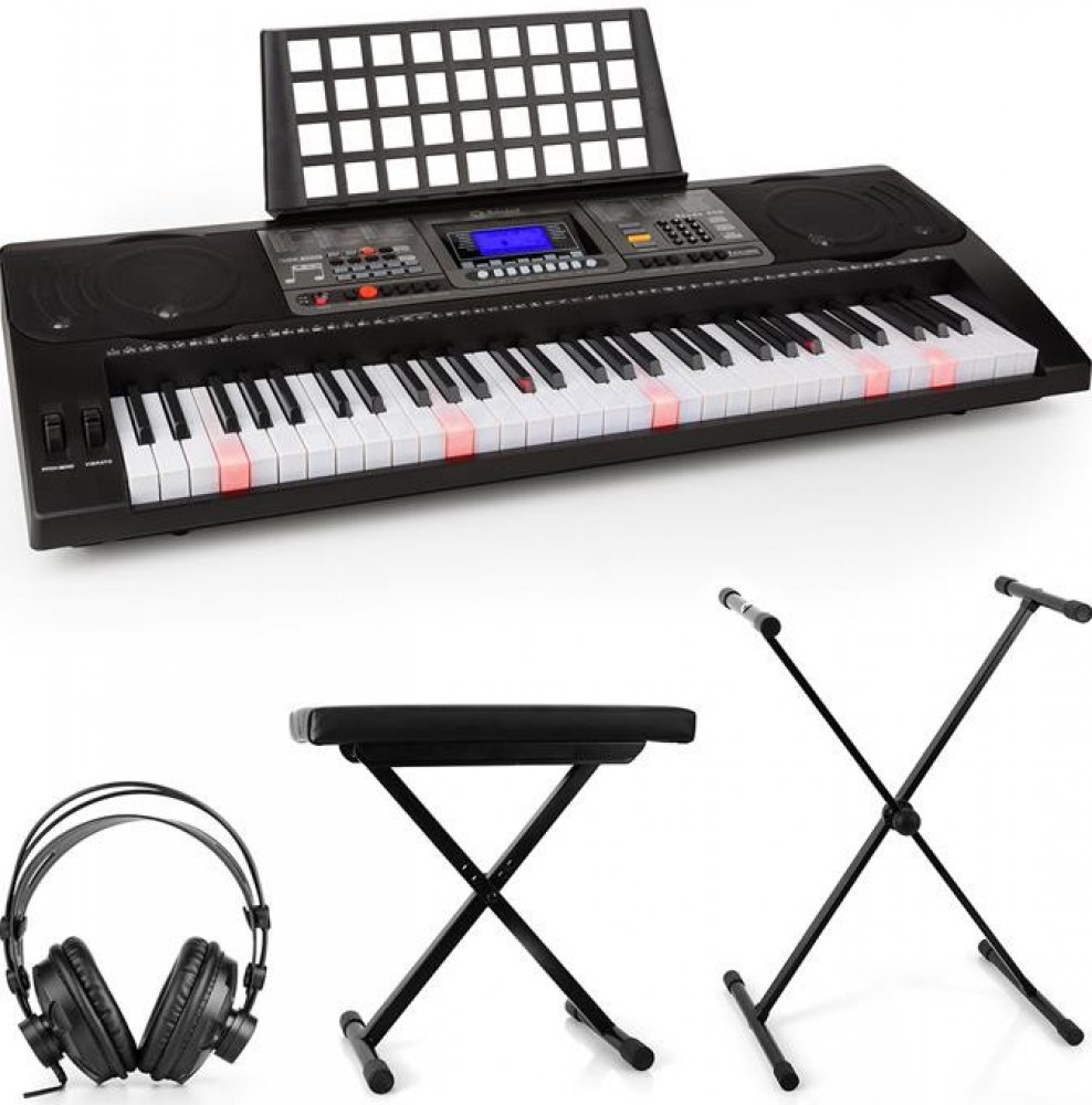 Obsáhlá sada cvičného elektronického klavíru Schubert Etude 450 USB sstudiovými sluchátky, skládacím stojanem na klavír je perfektní sestava pro všechny milovníky hudby.460 hlasů, 260 rytmů a 65 demo písniček i dalekosáhlé percussion-pad nabízejí budoucím umělcům velký poklad na ztvárnění kreací a na podporu vlastní kreativity. Pitch-bend a ostatní nastavitelné efekty jako např. sustain a vibrato dodatečně rozšiřují prostor na tvorbu.Kromě klasického učení not z papíru nabízí Schubert Etude 450 USB možnost osvojit si klávesnici intuitivní metodou. S inteligentní cvičební funkcí se naučíte vybrané skladby notu za notou ve třech učebních režimech, které na sebe navazují. V jednotlivých krocích se naučíte tóny, melodie a rytmy, přičemž Vás svítící tlačítka vedou cestou notovým prostorem.Dodatečné skladby na cvičení je možné odehrát na klavíry díky USB-MIDI rozhraní. Smysluplný feature při načrtnutí hudebních nápadů nebo při cvičení je integrovaná funkce nahrávání. Split funkce rozděluje klaviaturu na oblast basů a melodie, takže v téže tónině mohou hrát najednou dvě osoby. To je vhodné především při hraní s učitelem nebo s hudebním partnerem. 3,5 mm jack vstup pro mikrofon se stará o to, že nezávisle na dnu, spolubydlících a sousedech se můžete na plno oddávat hudbě.Auna HR-580 studiová sluchátka se postarají o to, aby se člověk mohl naplno oddávat hudbě nezávisle na spolubydlících, sousedech nebo od toho, kolik je hodin. Velké over-ear boltce perfektně izolují zvuky a díky měkkému polstrování se skvěle přitisknou k uchu. Díky extra dlouhému připojovacímu kabelu s délkou více než 2,5 metru neomezují Vaši svobodu pohybu. Malone Dimantale LTS4-ST-7-DSK stojan na klavír dodá hudebnímu kolektévu potřebnou stabilitu. S protiskluzovým povrchem dodávají klávesám maximální stabilitu. Stojan na piano se skládací X konstrukcí je dodatečně i výškově nastavitelný s rychlým systémem uzamykání s více úrovněmi. Sada je dokončena měkkou stolikou od Malone. S 3 nastaveními výškami a 5 cm vysokým pěnovým posltrováním stoličky je zaručeno pohodlí i při dlouhých sezeních.