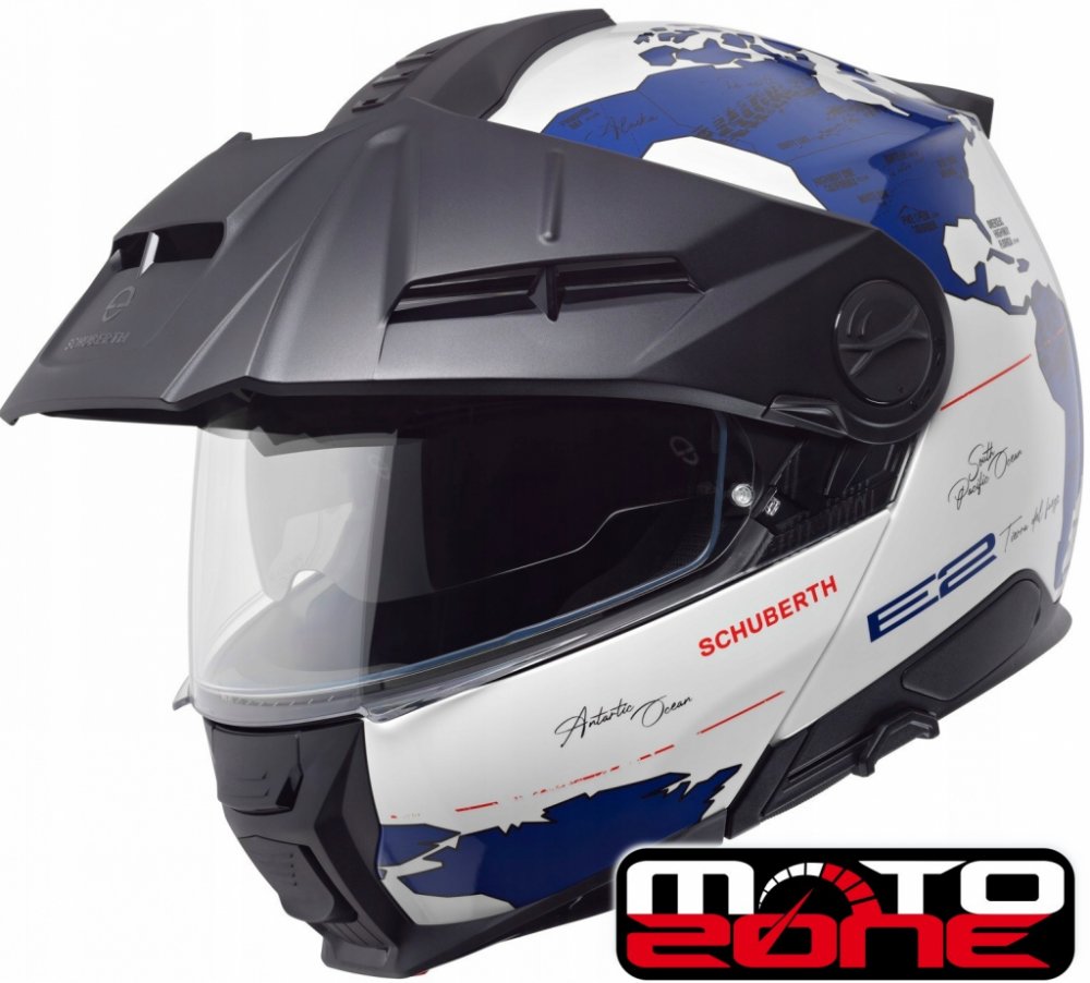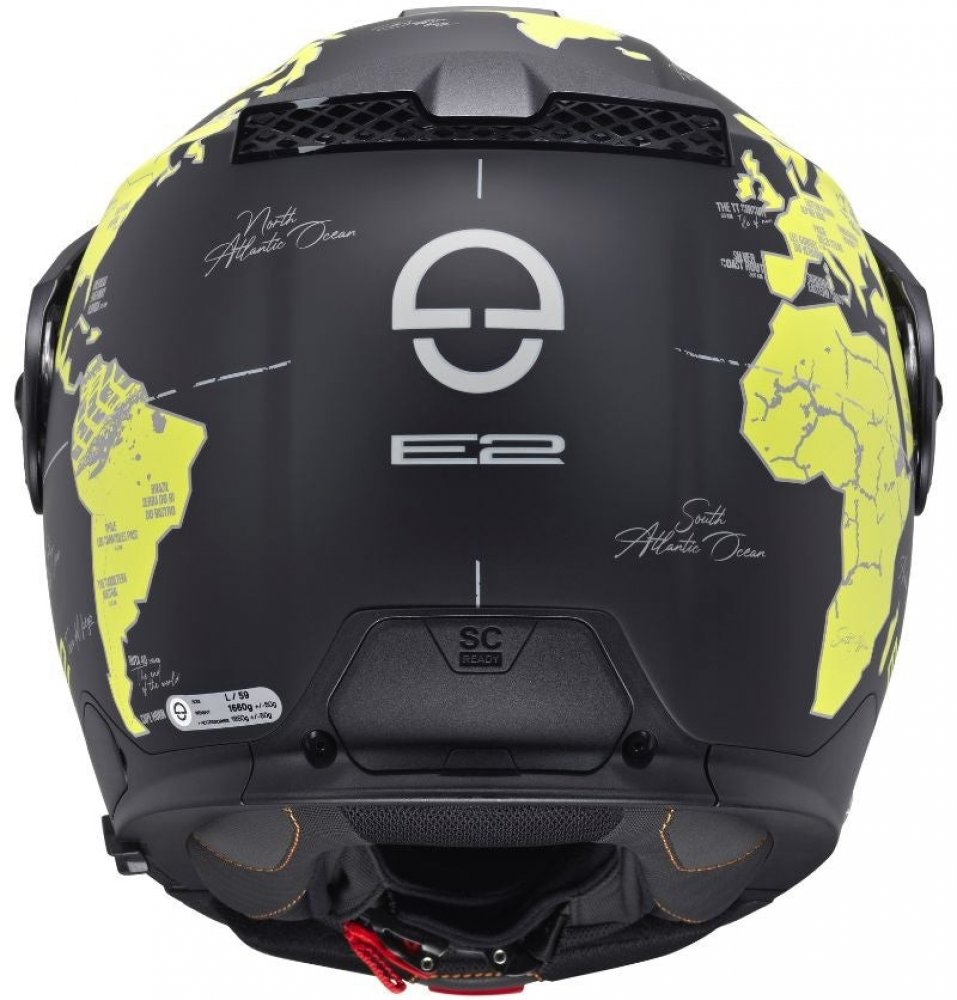 Nová výklopná helma E2 vychází z oblíbeného modelu Schuberth C5. Skořepina je stejná, je vyrobená ze směsi skelného vlákna DFP spolu s Carbonem, díky kterému má ještě lepší schopnost pohlcovat nárazy a navíc je lehčí.