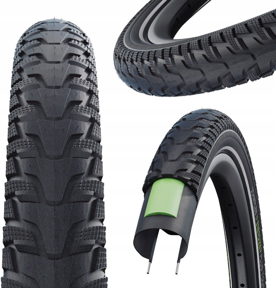 Reflex Reflexní pruh se rozsvítí při nasvícení reflektorem. Linie kvality Performance line Excelentní kvalita pro intenzivní nasazení. E.bike ready 50 km/h Doporučeno a homologováno pro elektrokola do 50 km/h Ochrana 5 GreenGuard GreenGuard.Stejný pricip účinnosti jako u SmartGuard ale ne tak silný.Vysoce elastický kaučuk je z třetiny vyroben z recyklovaných latexových produktů.
