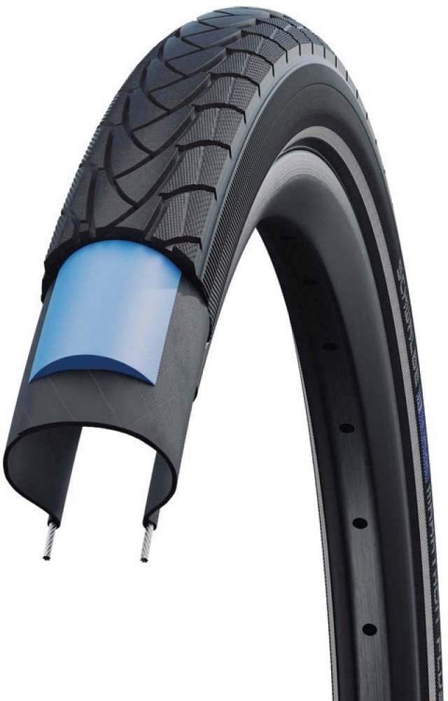 Nejprodávanější model pláště Schwalbe. Nejodolnější plášť proti proražení. Patentovaná, 5mm silná vrstva SmartGuard má v porovnání se všemi napodobeninami výraznou výhodu v podobě nízkého valivého odporu. SmartGuard vrstva je vyrobena částečně z recyklovaného materiálu z jiných latexových produktů. „Anti-aging“ boční stěna pláště. Vydrží mnohem déle bez typického poškození v důsledku jízdy při nedostatečném tlaku. Díky jeho skvělým vlastnostem, je Marathon Plus nejlepší volbou pro E-biky (R-25).