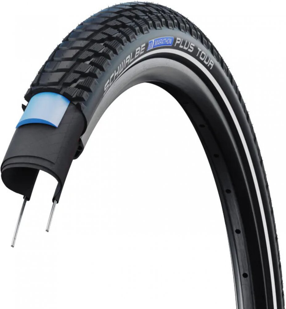 Prakticky nepropíchnutelný plášť. Jedná se o nejprodávanější model od Schwalbe. Odolnost proti proražení je zde dotažena do dokonalosti díky 5mm silné vrstvě SmartGuard. Kromě vysoké odolnosti se může pochlubit i dalšími ceněnými vlastnostmi, jako je například daleko nižší valivý odpor, než jiné pláště v podobné kategorii. V rámci šetrného přístupu k životnímu prostředí je vrstva SmartGuard částečně vyrobenaz recyklované gumy z latexových produktů. Díky zmíněným vlastnostem je Marathon Plus vhodným pláštěm i pro elektrokola až do 50 km/h.