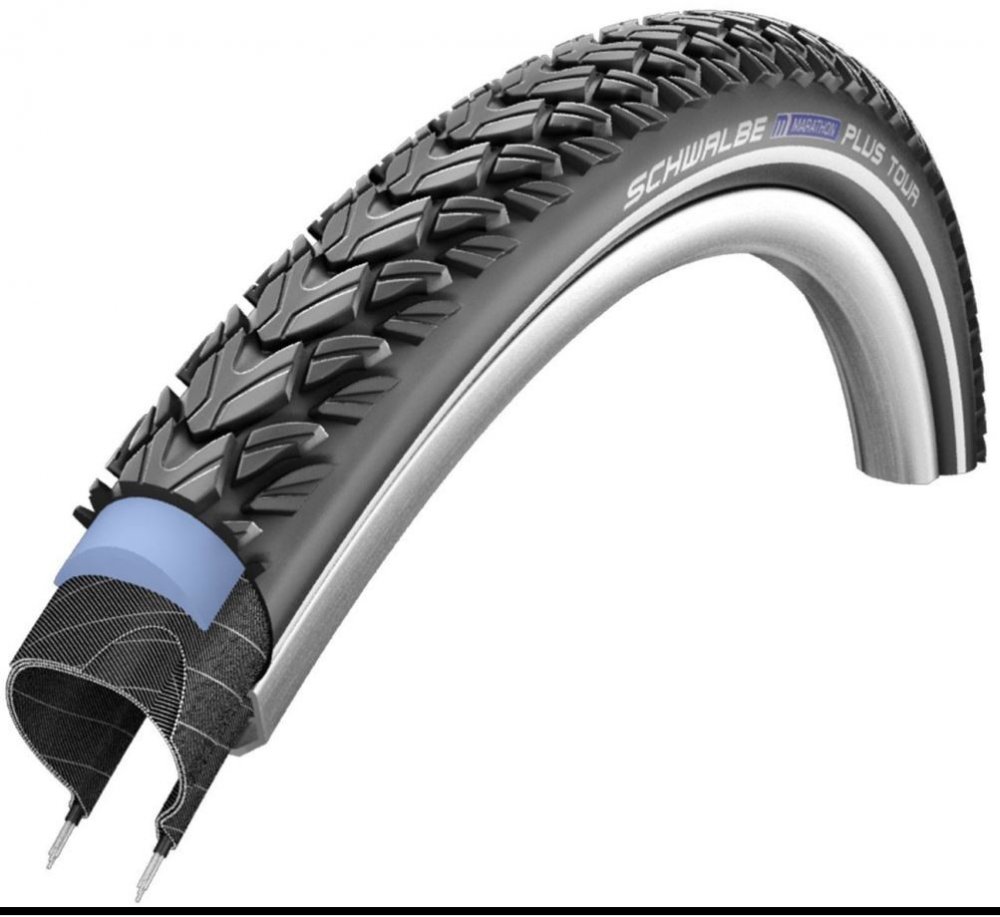 Schwalbe Marathon Plus je plášť s maximální ochranou proti defektu vhodný na cestovní, krosová a treková kola a také elektrokola. Verze Tour je vybavena odolnějším trekingovým dezénem. SmartGuard o
