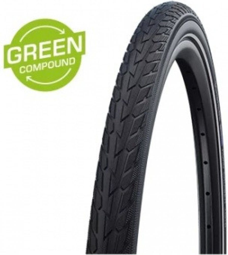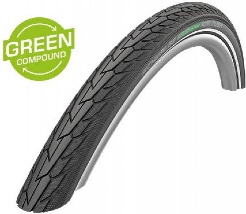Schwalbe Road Cruiser 47-622 28x1,75 zlatožlutý bok 28" trekingová pneumatika a jak název napovídá - silniční křižník. Městský, osobitý a dynamický. Road Cruiser okouzlí svým příjemným designem profilu a barevnými variantami. Efektivní ochrana proti defektu díky pásu K-Guard. Ochrana : K-Guard 3 - KevlarGuard - ochranný pás z přírodního kaučuku vyztužený kevlarovými vlákny. Provedení : Active - Linie kvality - spolehlivá značková kvalita s velmi hodnotnou kostrou 50 EPI Skin : Twin - přídavné pogumování na boku, chrání proti proříznutí. Skin znamená kůže, tím je označeno provedení boku pláště. Směs : Green Compound - běhounová guma vyrobená z obnovitelných a recyklovaných surovin. Vůbec poprvé je možné pomocí nově vyvinuté speciální technologie od společnosti Schwalbe vyrobit směs na běhoun (běhounovou gumu) cyklistické pneumatiky z obnovitelných a recyklovaných surovin. Green Compound nabízí dobrý výkon, pokud jde o přilnavost a trvanlivost. Kaučuk je vyroben z přírodního kaučuku získaného z obnovitelných gumovníků a z recyklovaných gumových materiálů, jako jsou gumové rukavice a těsnění dveří. Kromě úspory surovin také šetří energii při výrobě. Zelená sloučenina navíc neobsahuje žádné saze. Celkově je to docela významný krok k udržitelnosti. Detailní informace k produktu: Rozměr: 47-622 28x1,75 ETRTO Patka: DRÁT ( neskládací) - huštění : (3.0-5.0 bar) 45-70 psi - maximální zatížení při max.tlaku : 110Kg/1plášť - hmotnost: 785 gr (váženo) - EPI : 50 EPI ( hustota kostry pláště, počet vláken na palec) - art.-No. 11101285 - Barva : černá+zlatožlutý bok