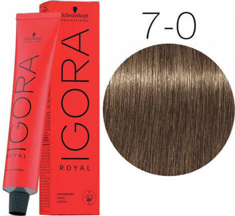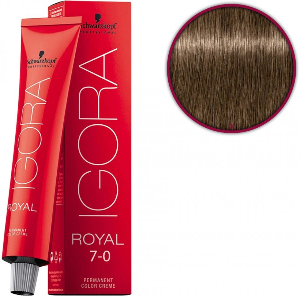 Schwarzkopf Barva na vlasy Igora Royal 7-0 60ml je profesionální permanentní barva na vlasy k použití v kadeřnických salonech. Permanentní barva na vlasy.