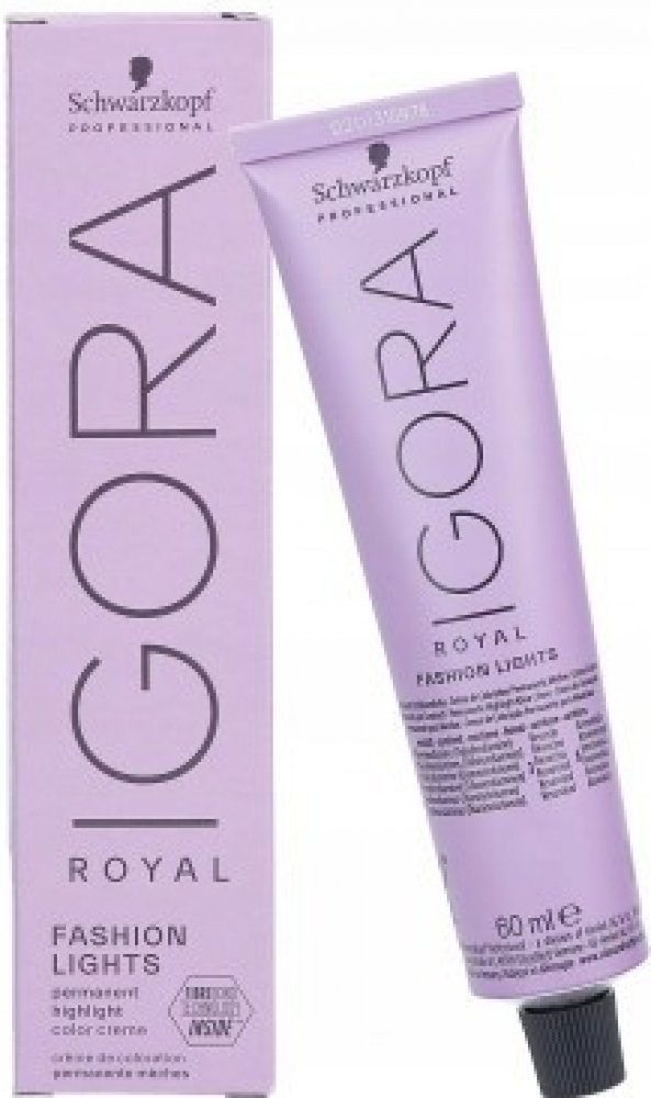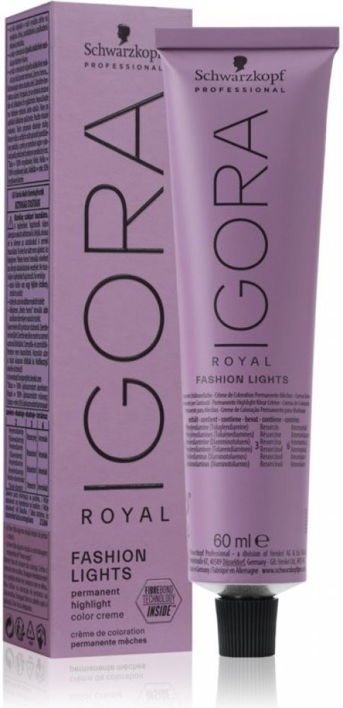 Permanentní barva na vlasy. Vzorník zobrazit ZDE Fashion Lights nabízí podkategorii melírovacích barev, které poskytují maximální kontrast a maximální zesvětlení pro zářivé barvy, opět pouze v jediném kroku. Brilantní barvy Igora Royal obsahují jedinečný Color Crystal Complex, díky kterému dosahují mnohem lepších výsledků barvení. Igora Royal představuje velmi vyváženou směs módních a přirozených odstínů. Má mnoho výhod tam, kde se jedná o překrytí bílých vlasů, intenzitu barvy a zesvětlení. Okouzlete své okolí pravou barvou v plné kráse s novou novou érou Igora Royal, která vám splní jakékoliv přání týkající se barvení, bez ohledu na typ vlasů, váš styl či věk. Očekávejte perfektní krytí na perfektní krytí bílých vlasů a nejvyšší sytost módních odstínů. Nová Igora Royal poskytne vašim vlasům dokonale sjednocenou barvu dokonce i na porézních a poškozených vlasech. Už se nemusíte bát rychlému vyblednutí barvy. Díky pokrokovým technologiím zajistí vašim vlasům až o 50% delší zachování barvy a o 25% lepší zářivost. Použití: Míchání: Výběr správného olejového developeru: * 12%/40 Vol. = moderní melírování Míchací poměr: 1:1 (např. 60ml barvy na vlasy Igora Royal + 60 ml Igora Royal Oil Developer) Speciální zesvětlení: zesvětlení o 4-5 stupňů, používá se olejový developer 12%/40 Vol. a míchací poměr 1:2 např. 30ml barvy na vlasy Igora Royal + 60 ml Igora Royal Oil Developer) Aplikace: Aplikujte na suché, nemyté vlasy. Aplikace na dosud nebarvené vlasy: Nejprve aplikujte do středních délek a konečků. Po 10-15 minutách aplikujte ke kořínkům. Aplikace na odrosty: Nejprve aplikujte ke kořínkům na oblast odrostů. Po 15-30 minutách pomocí duální aplikace naneste do středních délek a konečků. Doba působení: 10-30 minut = olejový developer 3%/10 Vol; 30-45 minut = ostatní olejové developery. Oplachování: Vytvořte amulzi a důkladně opláchněte. Umyjte vlasy bezsulfátovým šamponem pro barvené vlasy Color Freeze a použijte kondicionér nebo kúru. Pozor: Pro aplikaci barvy je třeba developer Schwarzkopf Igora Royal Developer, který prodáváme zvlášť. Vzorník zobrazit ZDE