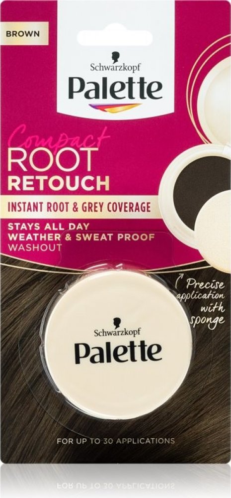 Palette Compact Root Retouch - kompaktní pudr pro okamžité zakrytí odrostů a šedin Potřebujete zakrýt nežádoucí odrosty na poslední chvíli? Řekněte odrostům sbohem a zakryjte je během několika sekund s pomocí kompaktního pudru Palette Root Retouch. Díky vysoce pigmentovanému pudrovému složení Vám odrostlé kořínky dokonale splynou se zbytkem vlasů, rychle a bez zatížení. Houbička, která je součástí...
