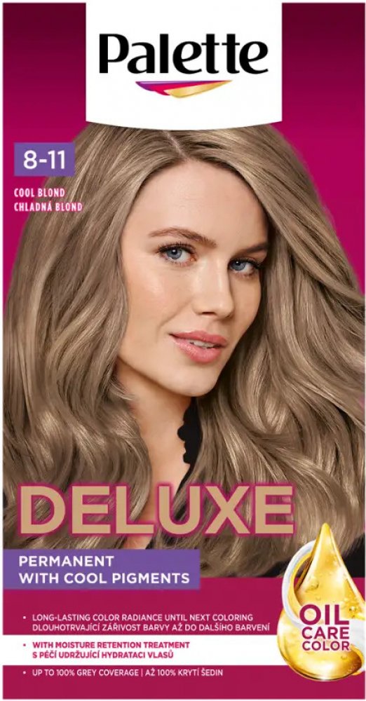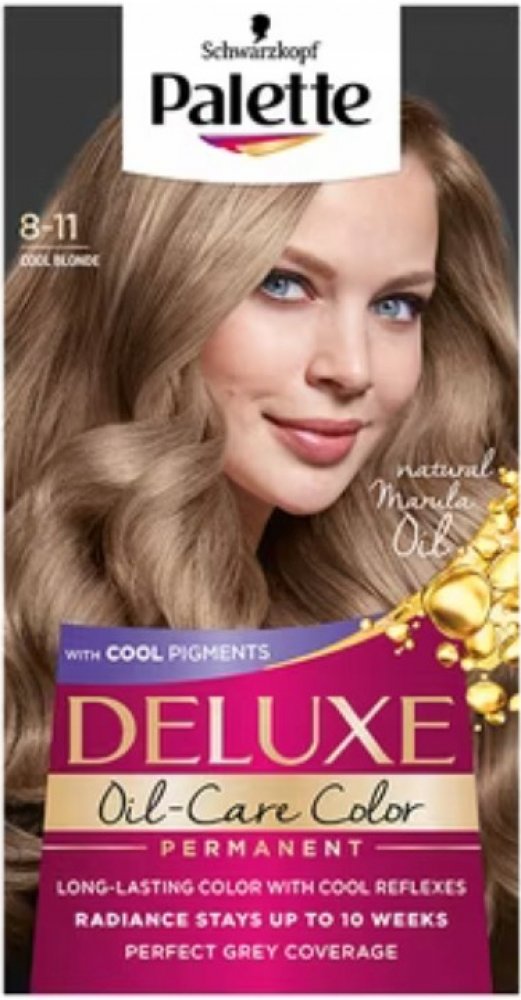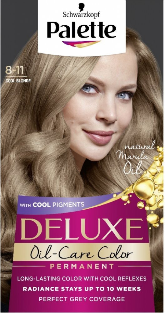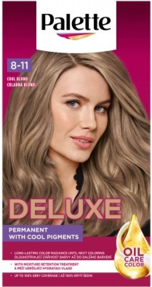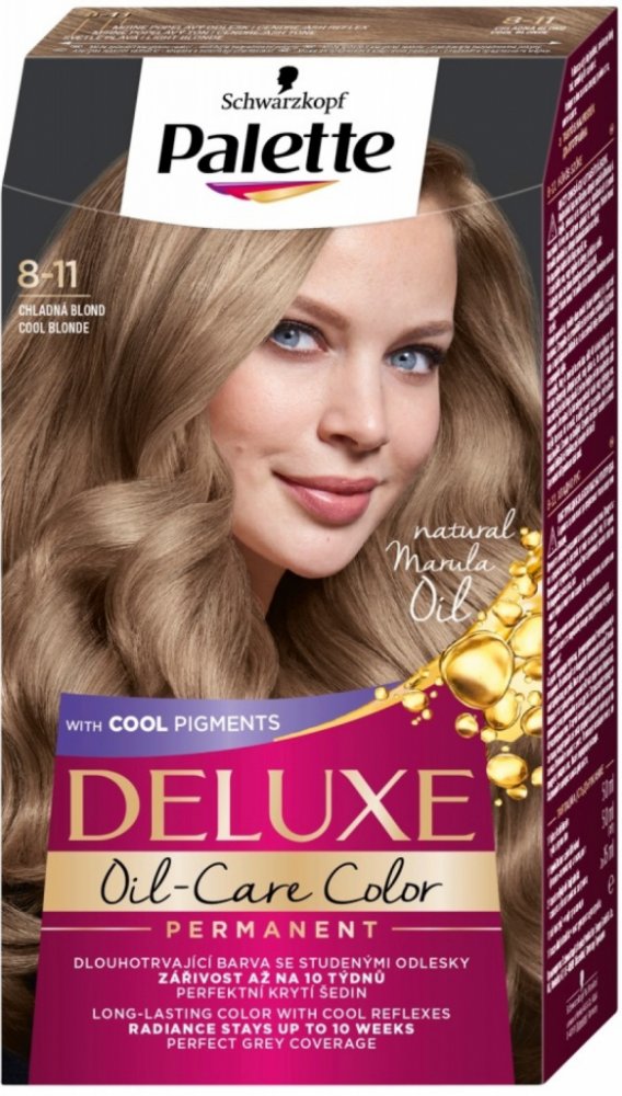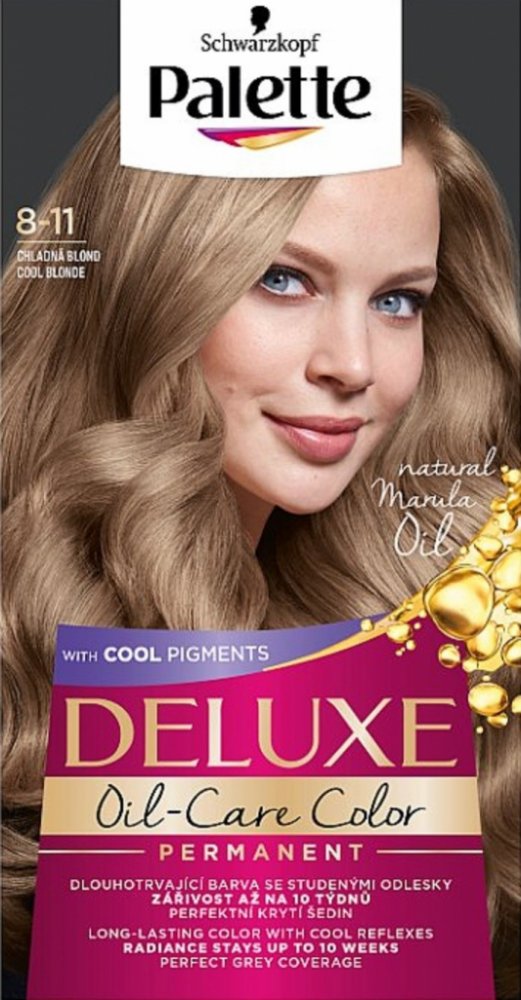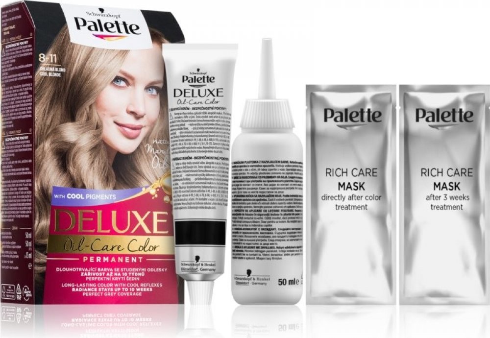 Více informací k produktu: dlouhotrvající barva se studenými odlesky zářivost až na 10 týdnů perfektní krytí šedin lesk Schwarzkopf Palette Deluxe barva na vlasy s obsahem mikro olejů působí až do hloubky vlasových vláken a uzamyká v nich studené barevné pigmenty. Barva perfektně kryje šediny a její účinek vydrží až po dobu 10 týdnů. V kombinaci s přírodními oleji hloubkově pečuje o vaše vlasy a dodává jim dokonalý lesk. Ihned po barvení se doporučuje aplikace masky obsažené v balení. Deluxe barva na vlasy od značky Schwarzkopf Palette poskytuje tu nejlepší péči. Pro zachování hedvábného lesku vašich vlasů po 3 týdnech od barvení použijte druhou dávku masky.