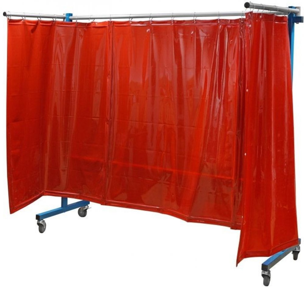 TransFlex ochranná zástěna, červená 3700 × 1950 mm Schweißkraft® Základem TransFlex ochranné zástěny je stabilní, svařený rám z ocelových trubek lakovaných práškovou technologií. Pro často se měnící svařovací pracoviště Vhodná ochrana i při použití jedné stěny i pro kombinaci více zástěn Certifikované dle normy DIN EN 1598, stupeň nebezpečí < 1 Rám TransFlex ochranné zástěny je pojízdný a široký 2 100 mm Dvě ramena o šířce 800 mm Tři závěsy ve dvou provedeních: červené nebo tmavě zelené o rozměrech 1 300 mm × 1 600 mm, bez lemu Čtyři kolečka o průměru 100 mm, z toho dvě s brzdou Parametry Rozměry (š × v × h): 1950×3700mm Hmotnost: 35 kg