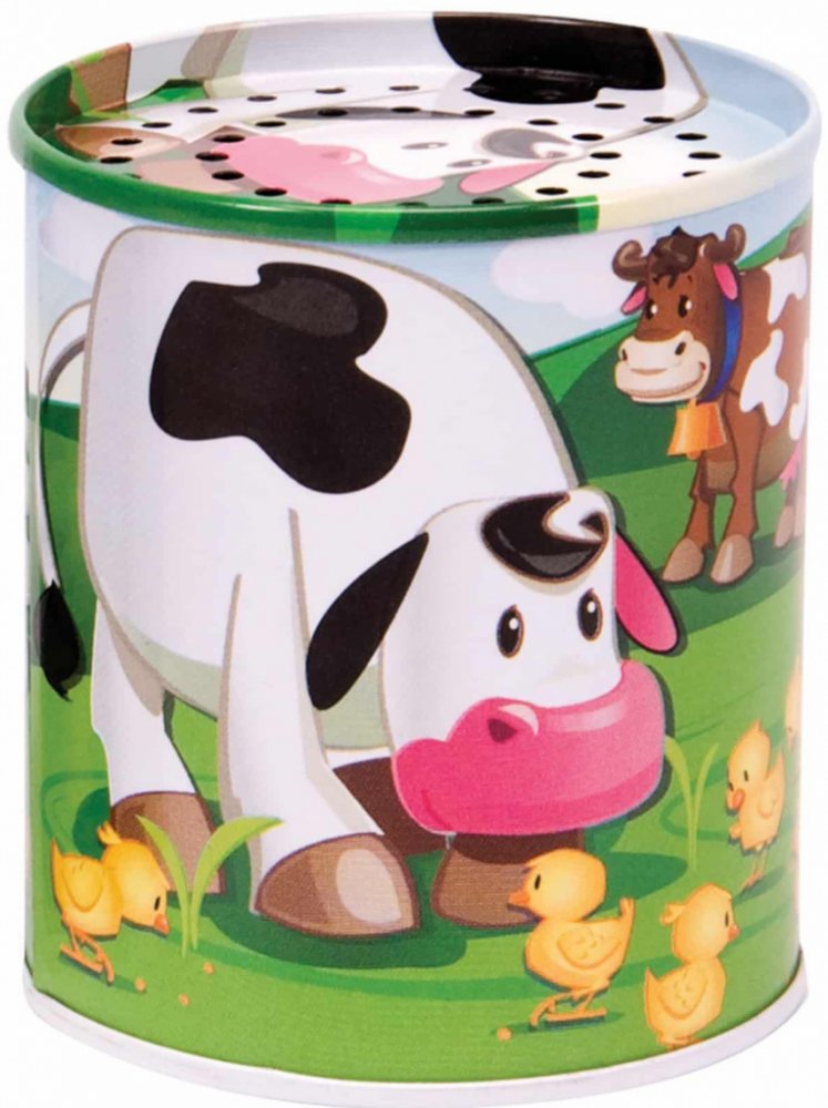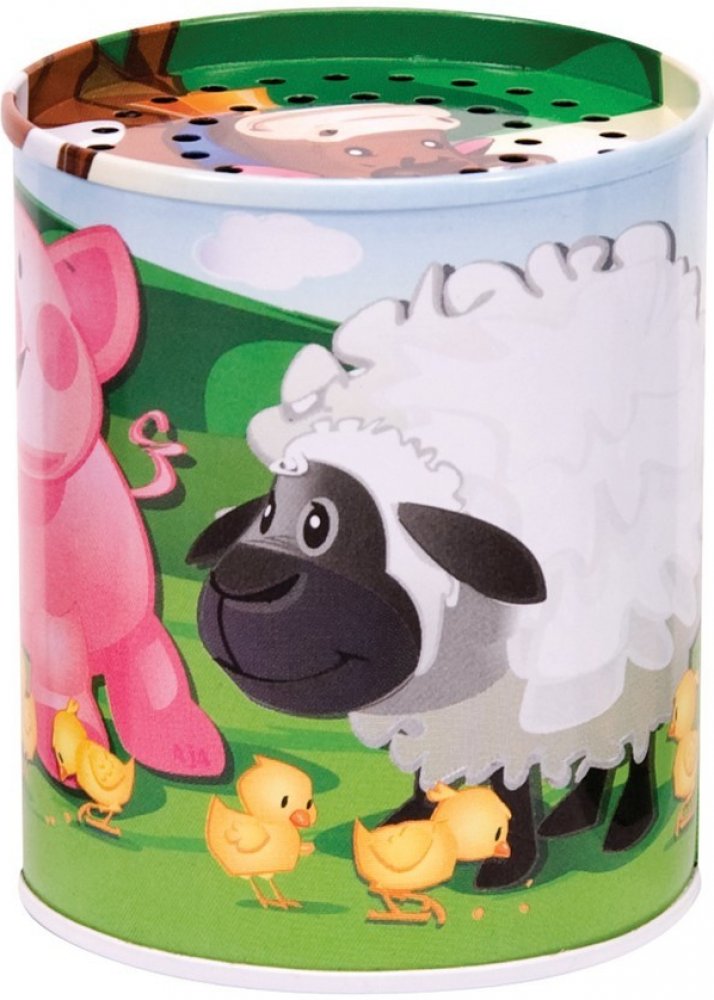 Naše plechovka se zvukem k Vám přináší farmu domů. Tato klasická plechová hračka je oblíbená po celá léta a pomáhá dětem rozvíjet rozpoznávání zvuků, když ji přiřazují ke správnému zvířeti. Kravičky, ovečky, kuřátka se pasou na polích, prasátka se vyhřívají v bahně a všichni jsou velcí kamarádi. Stačí jen plechovku otočit dnem vzhůru, a uslyšíte jejich zvuk. Designy a zvuky se mohou lišit. Otáčení...