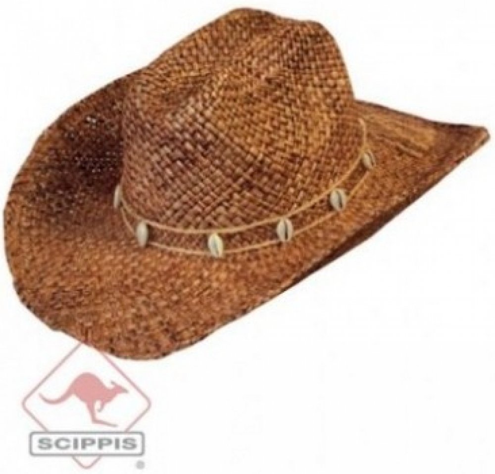 Drover od SCIPPIS je slaměný klobouk s hrubým pletením. Je ozdoben šňůrkou s bílými malými mušlemi. V okraji krempy je kovový drát pro individuální tvarování. Vhodná ochrana před sluncem na zahradní party i do přírody. Rozměry: šířka krempy: cca. 6 cm výška koruny: cca. 10,5 cm