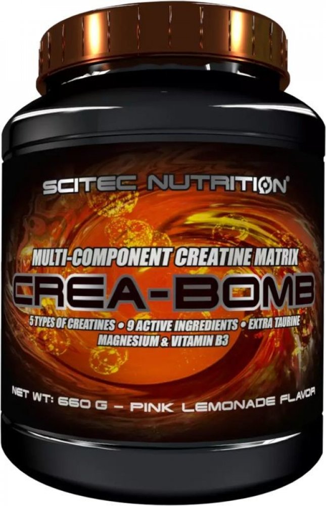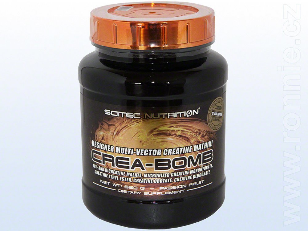 Základní koncepcí produktu Crea-Bomb je, abyste se nemuseli účastnit nerozhodných a sporných rozhovorů o tom, která forma kreatinu je nejlepší. Každému vyhovuje jiná forma nebo zároveň i více forem kreatinu, které mohou mít odlišné přednosti (v závislosti na tom, s jakou účinnou látkou je chemicky sloučený). Crea-Bomb je nová formule kreatinu. Náš matrix obsahuje kreatin monohydrát, mikronizovaný kreatin monohydrát, kre-alkalyn (pufrovaný kreatin monohydrát), kreatin pyruvát, kreatin citrát, kreatin fosfát. Kreatin zvyšuje fyzickou výkonnost při po sobě jdoucích krátkodobých intervalech vysoce intenzivního fyzického výkonu – příznivého účinku se dosáhne při přívodu 3 g kreatinu denně.