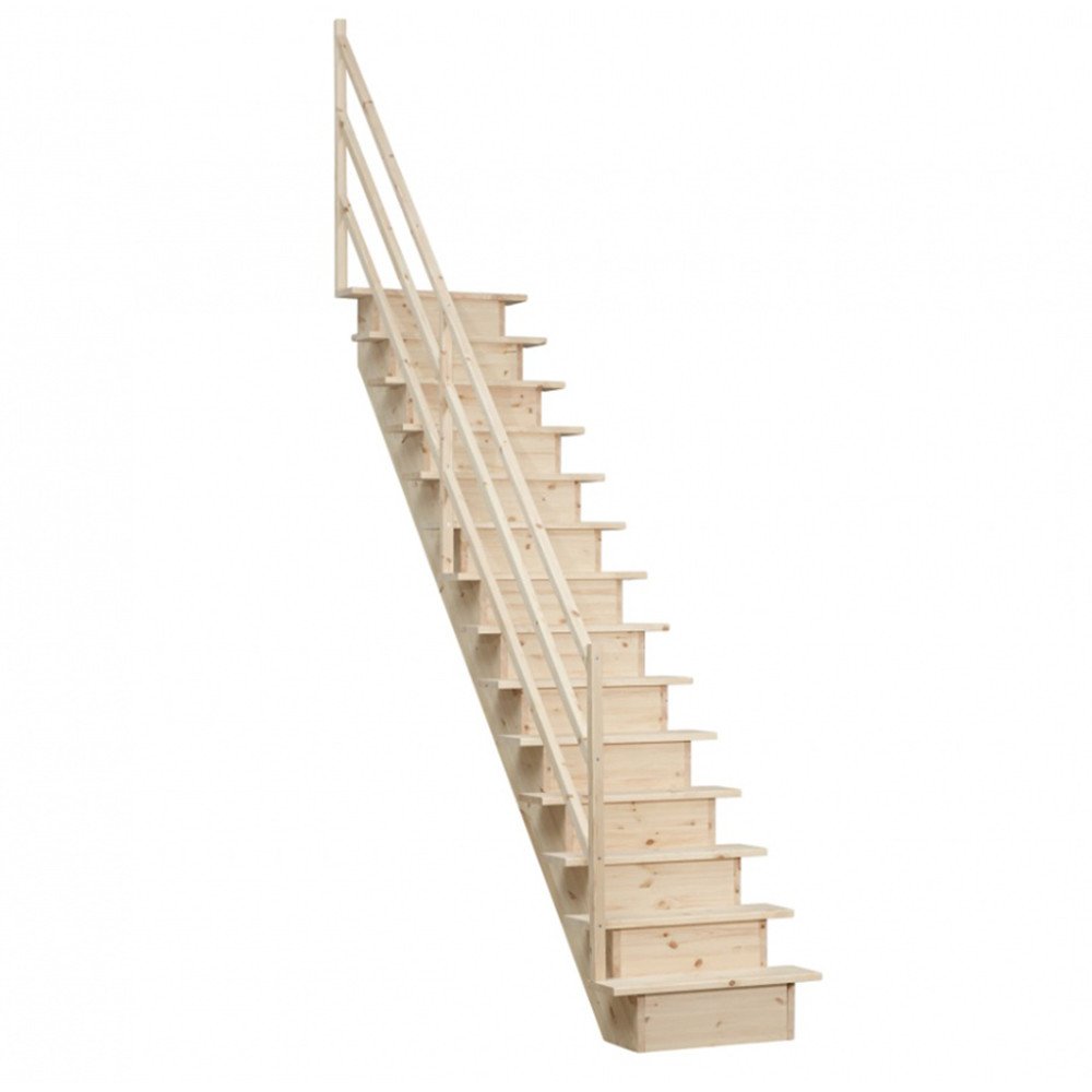 Přímé schody EXTRA představují ekonomické a elegantní řešení pro prostory, kde je omezené místo, ale přesto je potřeba spolehlivé provozní schodiště. Celé schody jsou vyrobené z kvalitního blokově lepeného borovicového dřeva, které zajišťuje jejich pevnost a dlouhodobou odolnost i při každodenním používání. Díky možnosti zkrácení několika stupňů si můžete výšku schodiště snadno přizpůsobit konkrétnímu místu a výšce podlaží až do 3 metrů. Montáž je maximálně jednoduchá, což ocení jak profesionálové, tak domácí kutilové. Každý stupeň je dostatečně široký (210 mm), šířka schodnice činí 800 mm a tloušťka dřevěných prvků je 26 až 28 mm, což zaručuje stabilní a bezpečné používání. Schodiště se dodává v nerozmontovaném stavu, což usnadňuje dopravu a manipulaci, a je připravené k následnému lakování či úpravě podle vašeho interiérového stylu. Tento produkt tak spojuje praktičnost, kvalitu materiálu a flexibilitu, kterou ocení každý, kdo hledá funkční řešení pro půdní prostor, loft nebo jiné místo s omezeným prostorem.