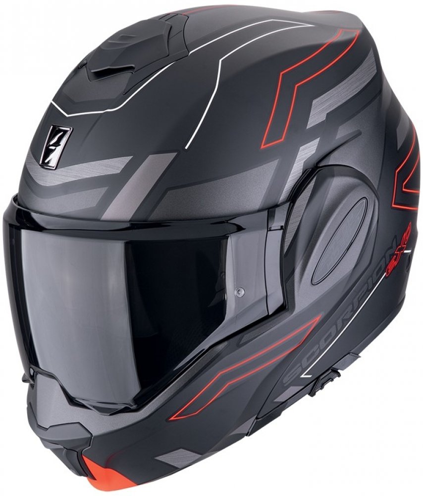 Překlápěcí helma je skvělým společníkem na dlouhé trasy napříč světem. Přilba s překlápěcí bradou, sluneční clonou a Pinlockem má homologaci jako uzavřená i jako otevřená. Příprava na interkom je samozřejmostí. Nechte se unést přilbou EXO-TECH EVO, která vám dopřeje svobodu cestování.