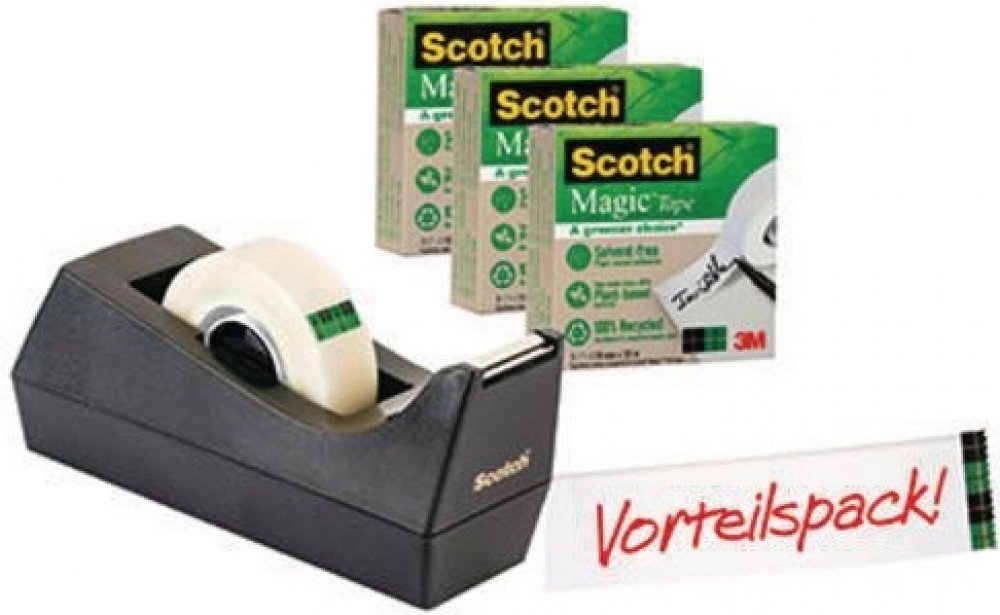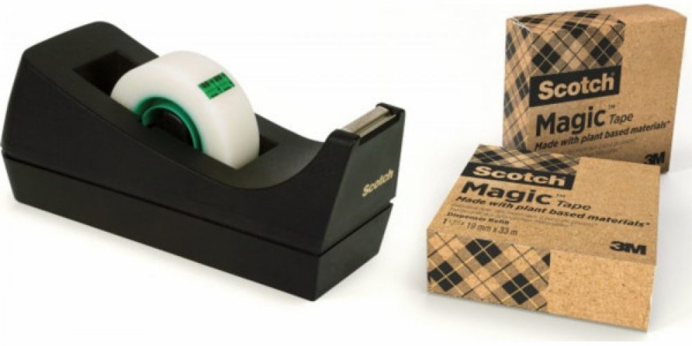 Podavač + matná kancelářská páska 19mmx33m 3ksSCOTCH ➡️ Firmy a služby/Kancelářské a reklamní potřeby/Kancelářské potřeby/Adhezivní pásky a lepidla✔️ Scotch(R) Greener Choice je ekologicky šetrná páska Magic, ideální pro opravy a lepení dokumentů, zalepování obálek a lepení fotografií a grafiky Lepidlo a 53% pásky je vyrobeno ze surovin rostlinného původu, a dávkovač, obal a trn jsou vyrobeny ze 1...