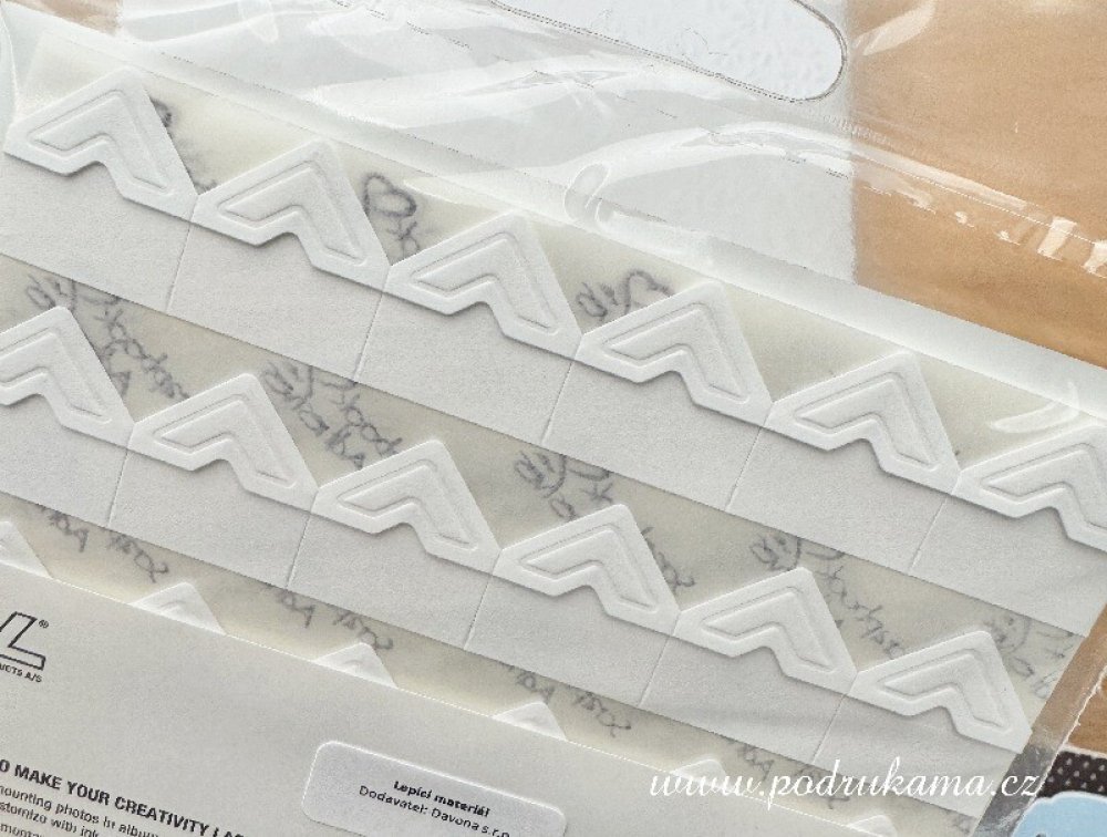 Samolepicí fotorožky od firmy Scrapbook Adhesives jsou určené pro vlepování fotografií do klasických fotoalb uvnitř s čistými listy. Není problém kombinovat různé barvy zdobných rožků s klasickými průhlednými rožky nebo podlepkami. Vše záleží na vaší kreativitě.