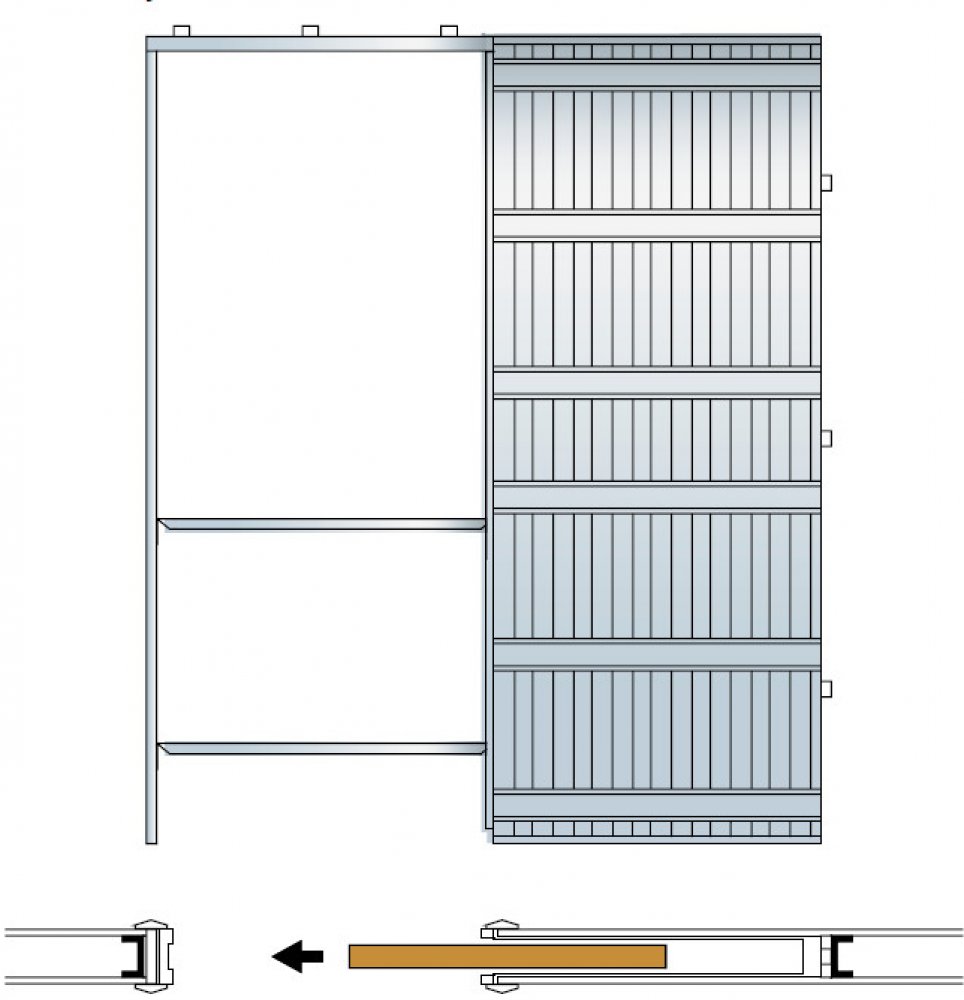 - posuvný systém tvoří hliníková kolejnice s bočními PVC profily, které vymezují minimální sílu hotové příčky