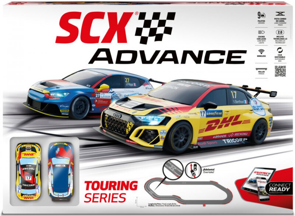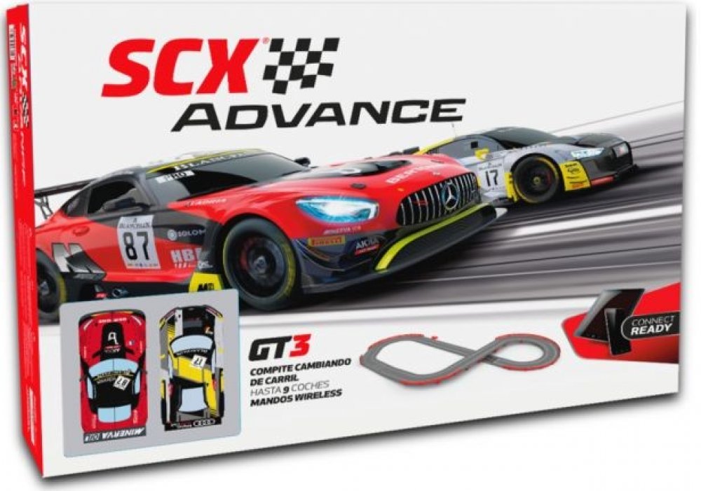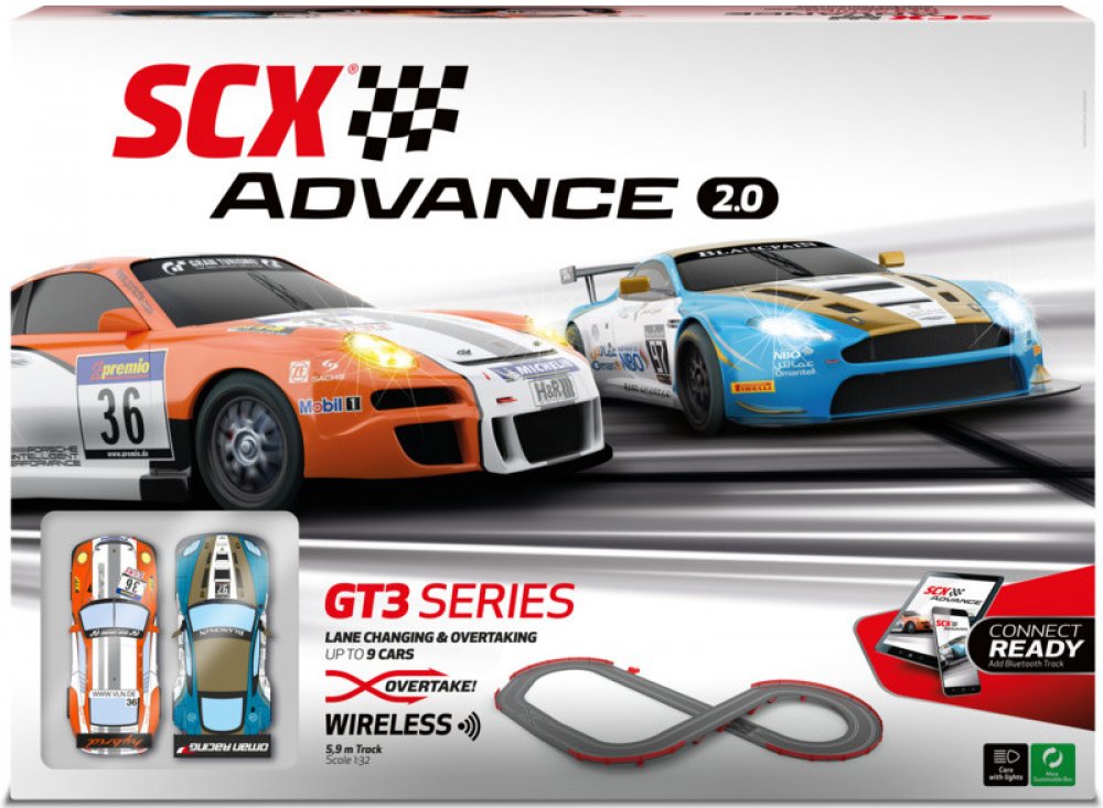 Autodráhy SCX Advance jsou digitální, což umožňuje na rozdíl od klasické analogové autodráhy vzájemné předjíždění a mnoho dalších funkcí. Měřítko 1:32 je ideální velikost pro pravé a napínavé závody při kterých si plně užijete a osvojíte dynamiku autíček. Autodráhy SCX 1:32 mají shodné traťové díly a lze autodráhu vylepšovat a rozšiřovat. Autodráhy SCX Advance lze navíc pomocí tuningové Bluetooth rovinky (prodává se samostatně) spojit s telefonem či tabletem. V telefonu pak budete mít dispozici počítadlo kol, tvorbu závodů, nastavení autíček, nebo zde můžete sdílet výsledky. Pokud ještě Bluetooth rovinku doplníte o boxovou uličku, můžete prožívat napínavé závody s úbytkem paliva a tankováním.