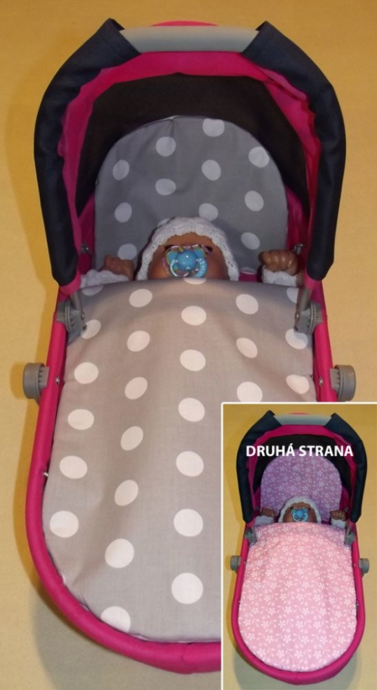 SDS Peřinky do kočárku pro panenky Puntíky šedáKvítky růžová