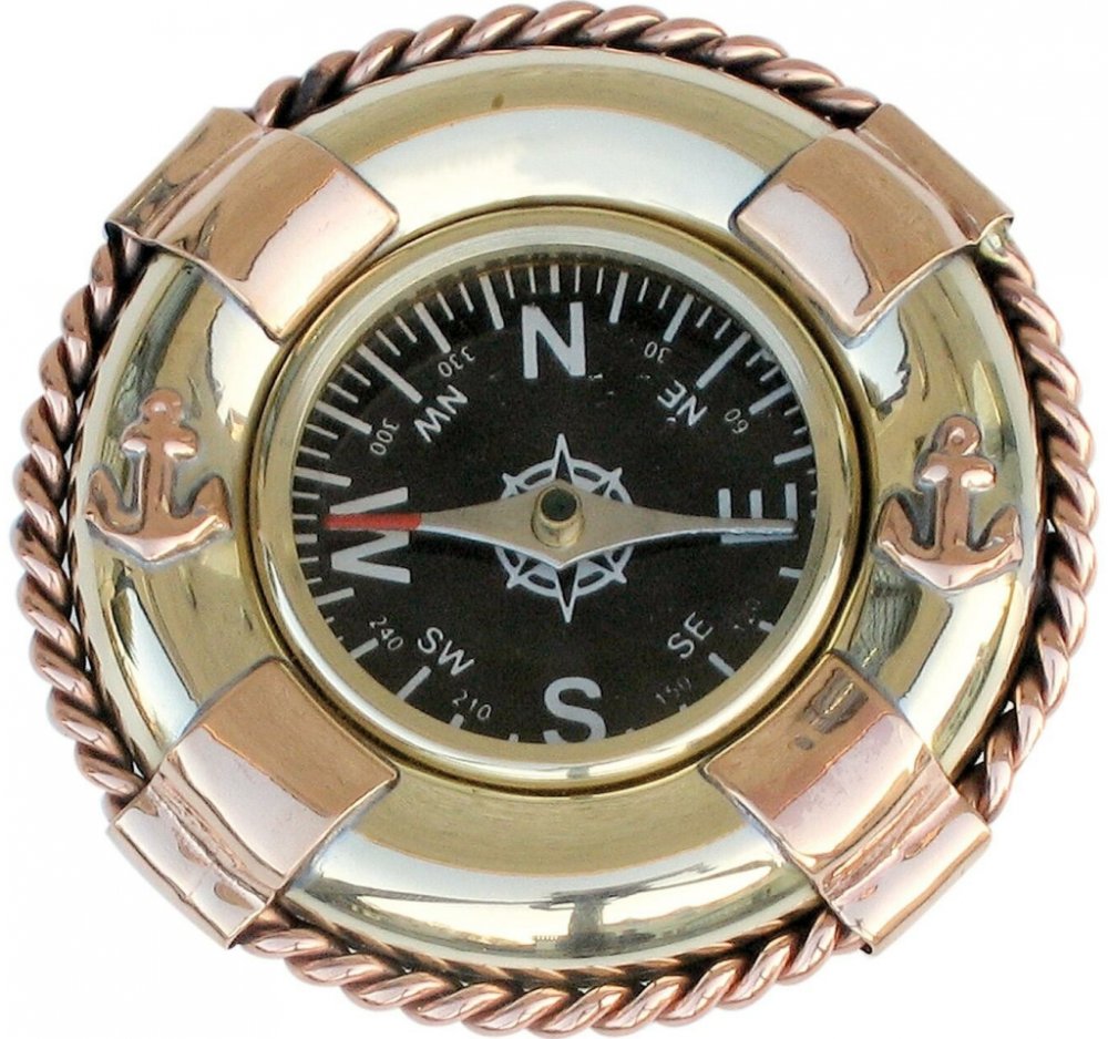 Objevte stylový a funkční doplněk pro vaše dobrodružství na vodě i na souši!Tento kompas v provedení záchranného pásu je vyroben z kvalitní mosazi a mědi, což mu dodává nejen atraktivní vzhled, ale i dlouhou životnost. Průměr 6,5 cm zajišťuje pohodlnou manipulaci a snadné čtení směru. Ideální jako praktický nástroj i jako dekorativní doplněk každé kajuty, kanceláře nebo domova s námořní tématikou....